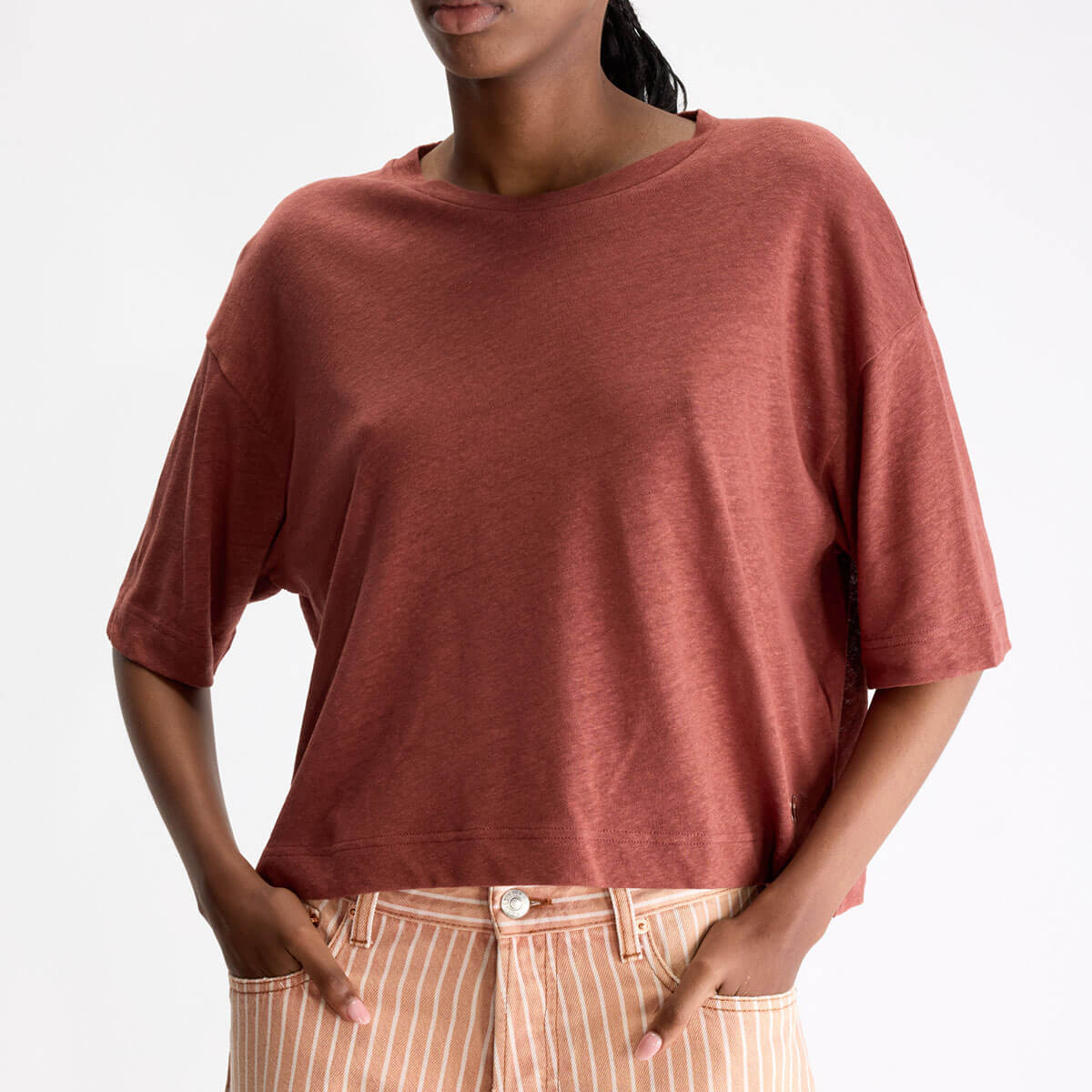 Vydel T-Shirt by Bellerose. Oversized crewneck tee with short sleeves and dropped shoulders, made from cotton and linen jersey.