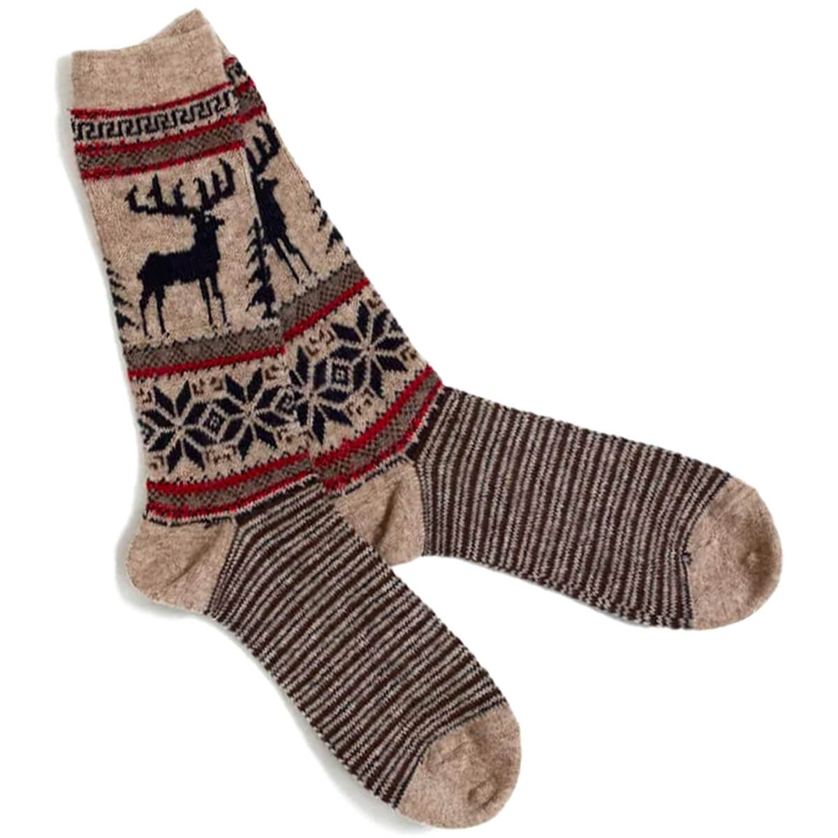 Wool Deer Snow Jacquard Crew Adult Socks in Beige by Anonymous Ism