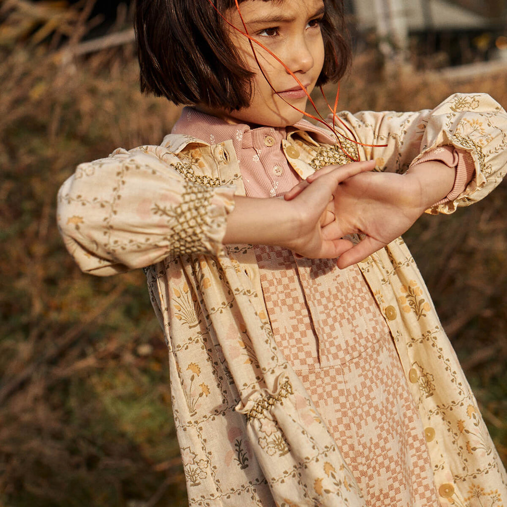 Aline Smock Shirtdress in Cabin Quilt Cream by Apolina - Last One In Stock - 5-7 Years