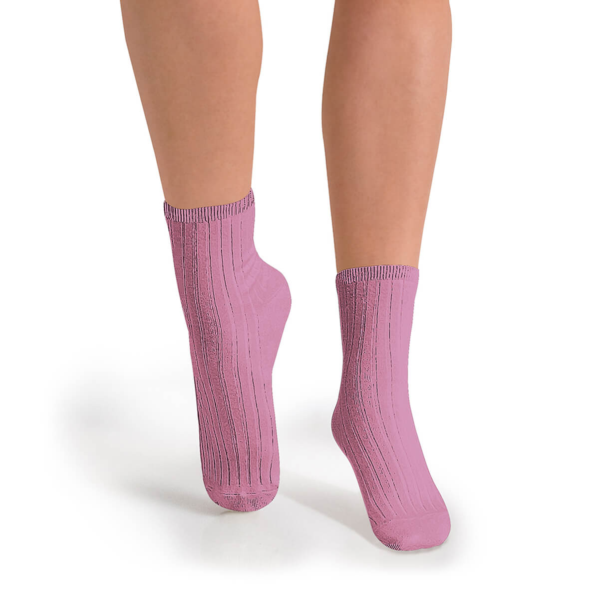 La Mini Ribbed Ankle Socks in Rose Bonbon by Collegien