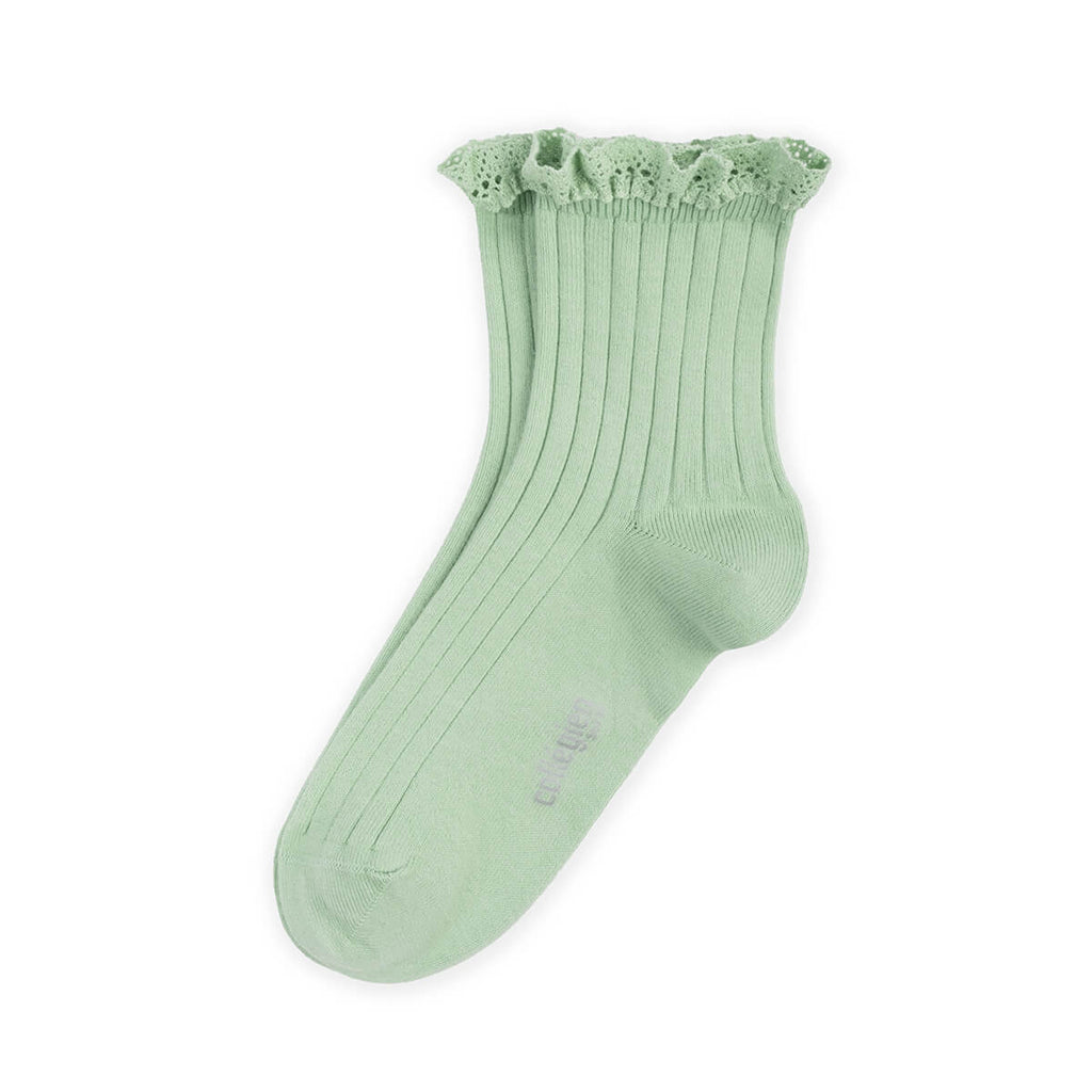 Lili Lace Trim Ribbed Ankle Socks in Verveine by Collegien