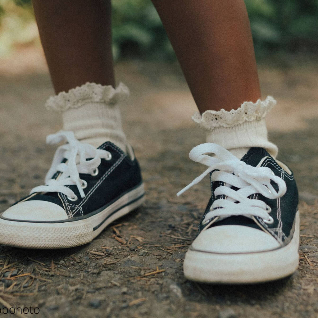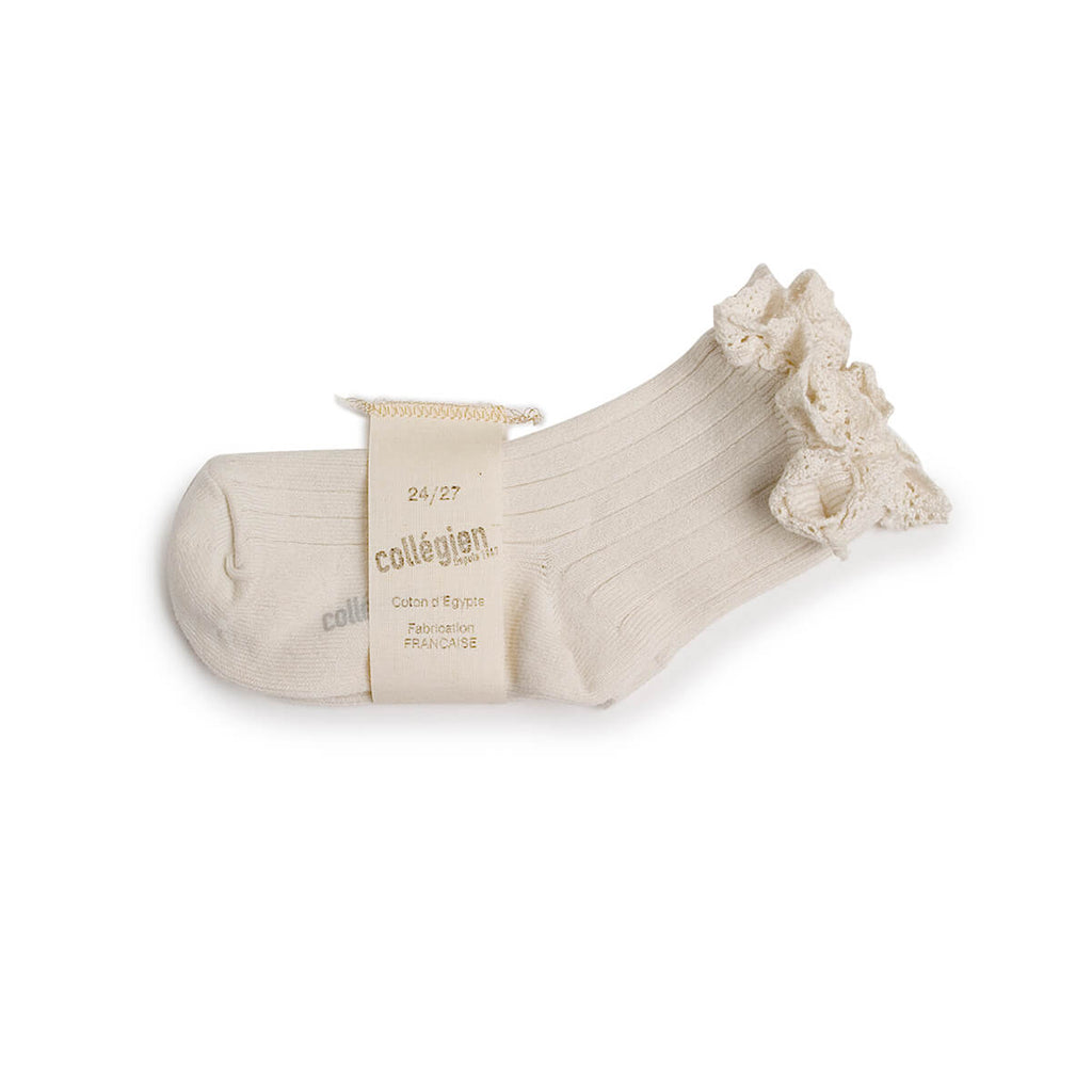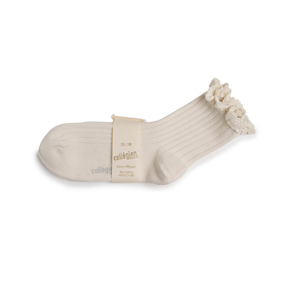 Lili Lace Trim Ribbed Ankle Socks in Doux Agneaux by Collegien
