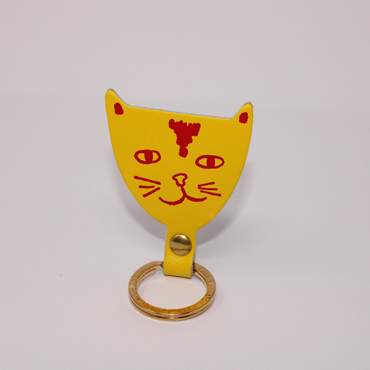 Cat Head Key Fob in Yellow by Ark Colour Designs