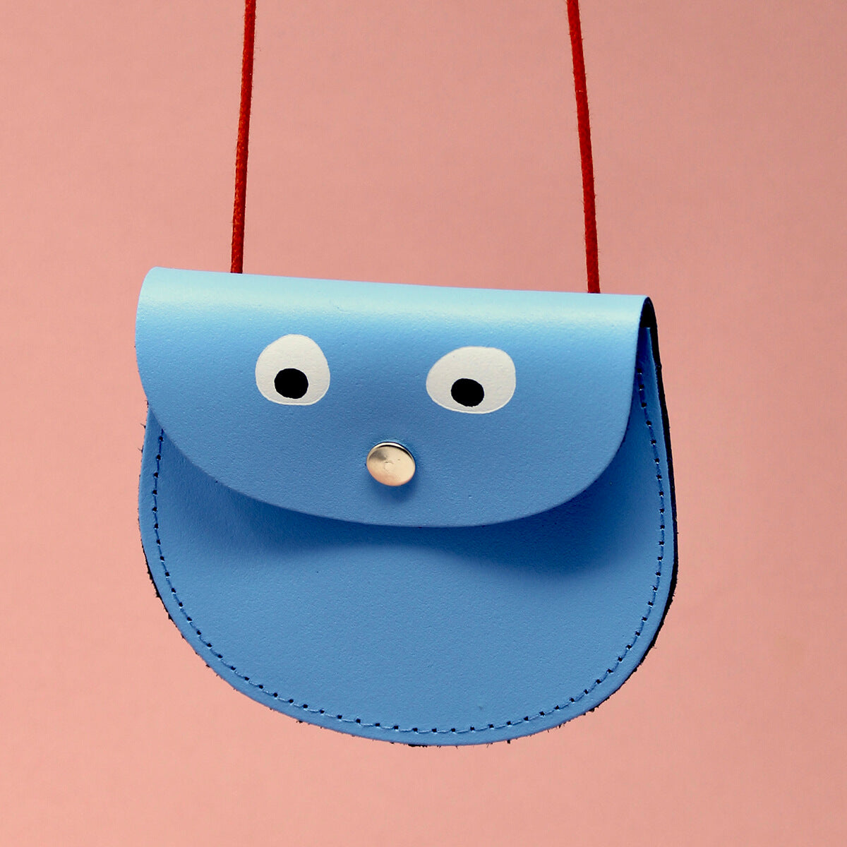 Googly Eye Pocket Purse by Ark Colour Designs. A leather purse with fun googly eyes on a red cord perfectly sized to hold a bank card, or any other small treasures. Features a brass press stud closure and a quick-release clasp on the cord for safety.