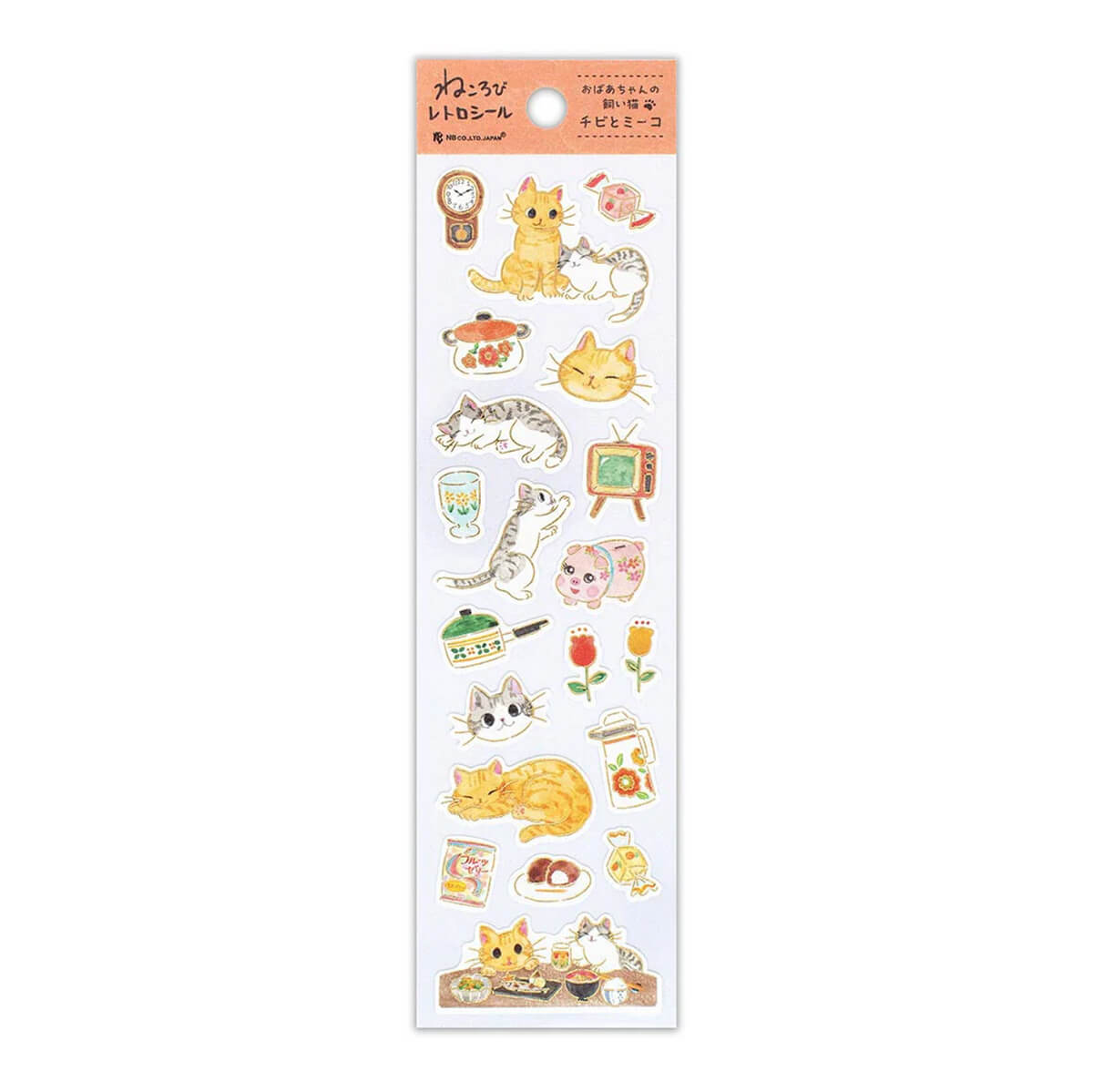 Sento Cat Stickers by NB Japan. Adorable Grandma's house themed stickers. The stickers feature cats, floral pots, sweet treats and other items you might find at Grandma's.