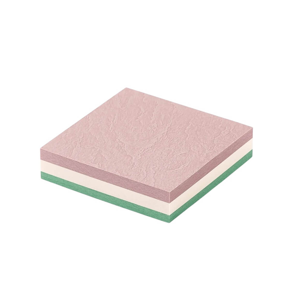 Mottainai Notepad Number 15 by Takeo Paper Products Japan. Mottainai translates as What a waste or Don't be wasteful in Japanese and encourages people to value resources, reuse and upcycle. These Mottainai notepads are created from 3 types of fine paper offcuts to let more people experience these special papers before they are gone.