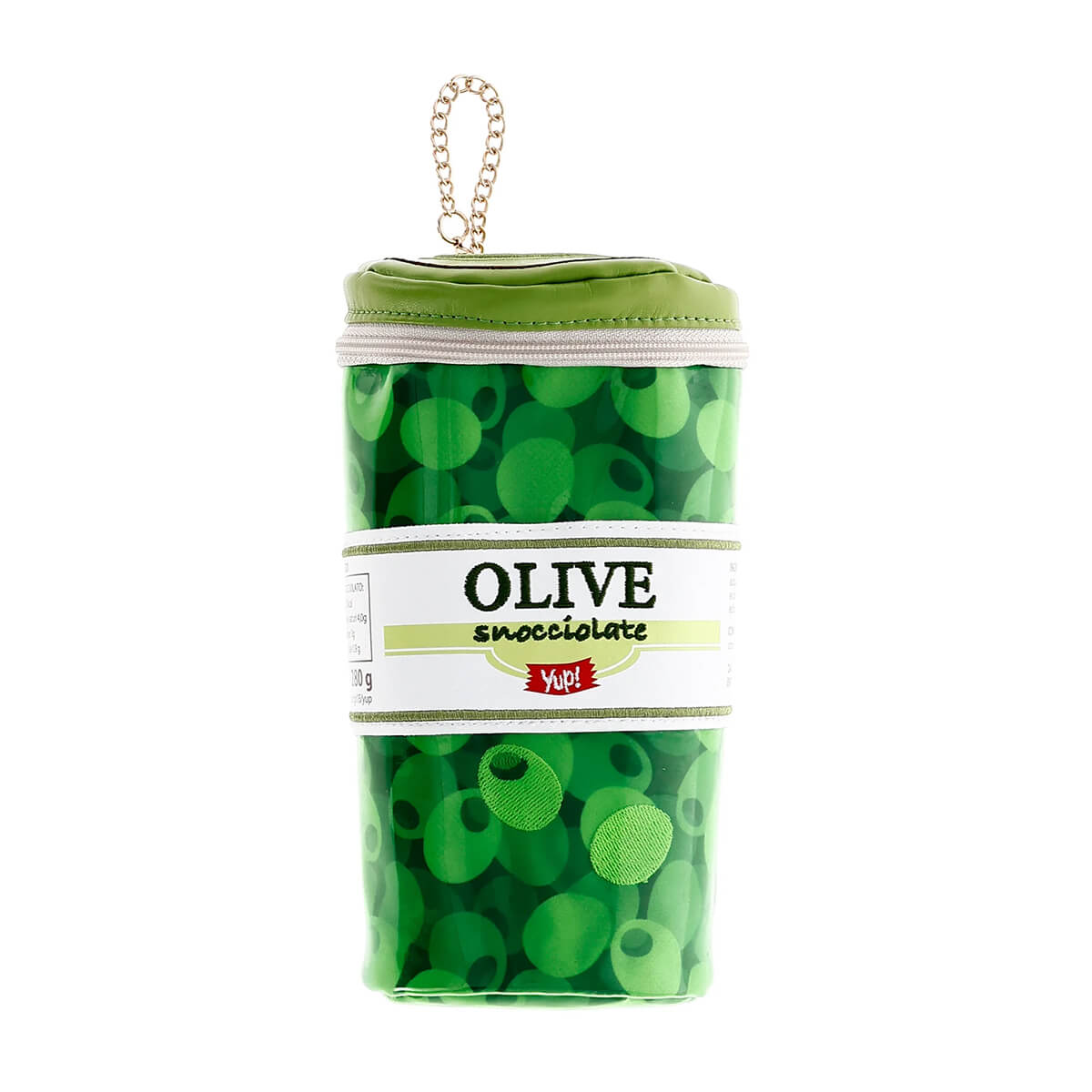 Olive Pouch by Yup! The YUP! Olive pouch is a playful item for your daily essentials. Shaped as a jar of olives this pouch adds a touch of humour to your bag or interior. The zip at the top makes it easy to store your small items safely. Whether you use it as a make-up bag or pouch, this item will make you smile!