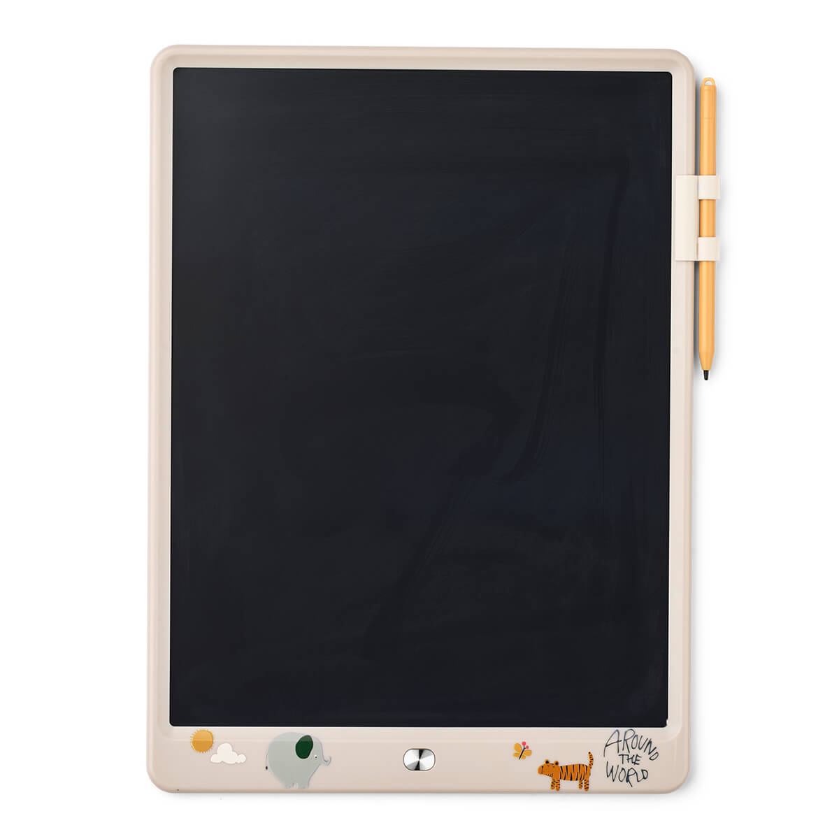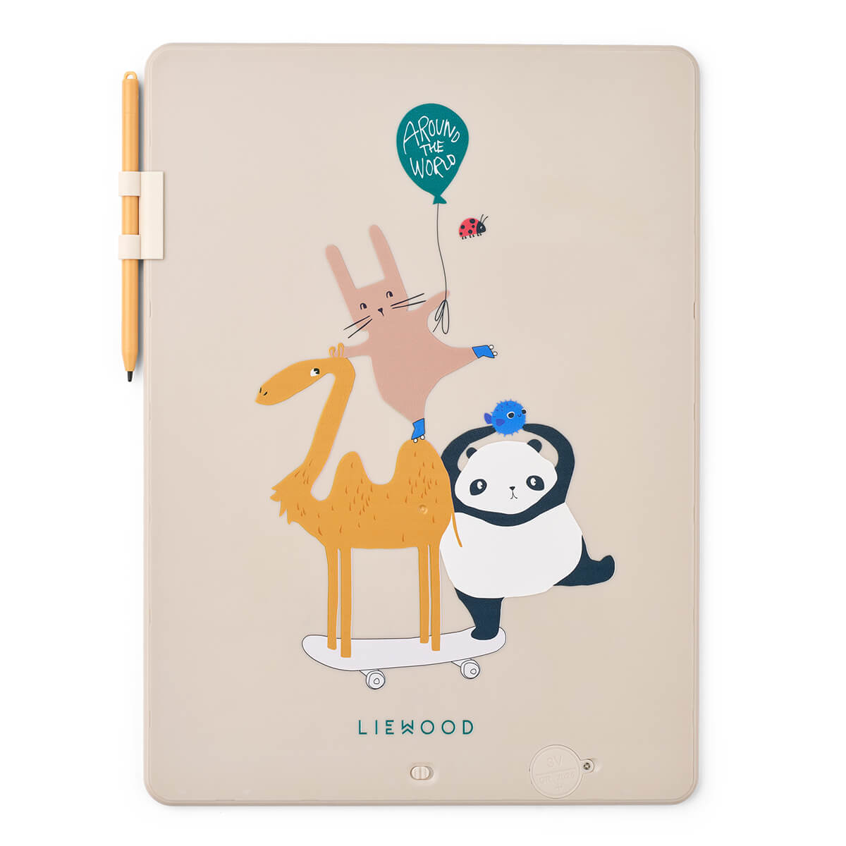 Zora Magic Drawing Board by Liewood. LCD drawing board designed for endless creativity, complete with a pen. Lightweight and reusable, it features a screen lock for saving drawings, a simple erase button, and a secure pen holder — perfect for on-the-go imagination.