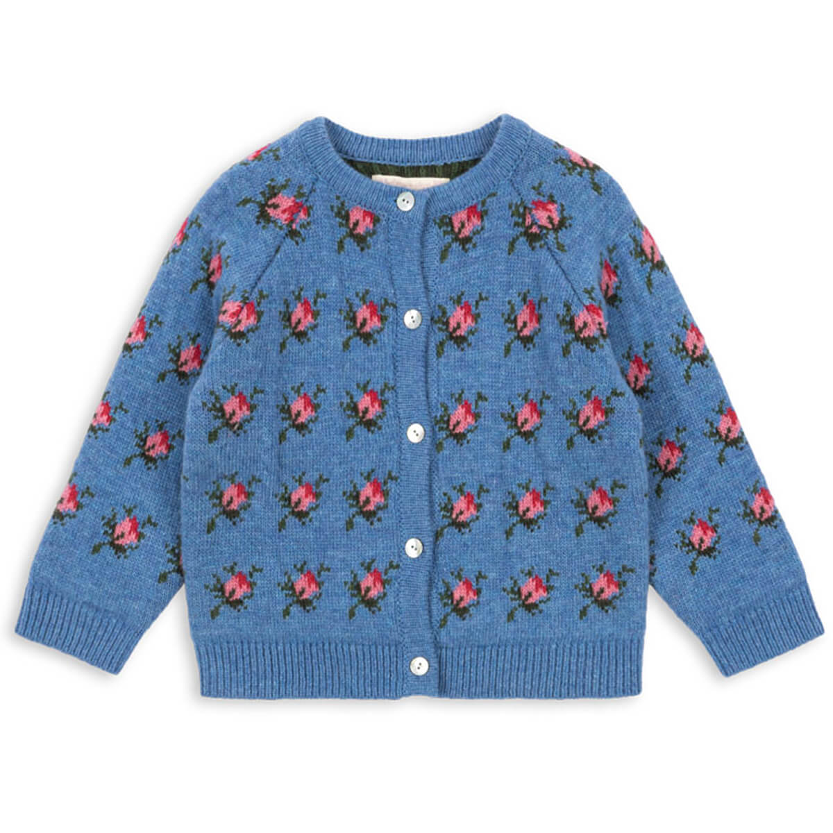 Belou Cardigan by Konges Sløjd. Soft and warm cardigan in a chunky wool blend. Finished with rib hems, regular round neck, and mother of pearl buttons in front.
