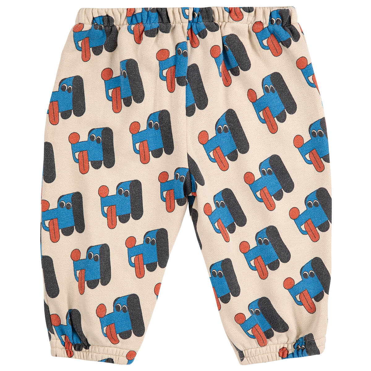 Doggy Mate All Over Baby Sweatpants by Bobo Choses. Fun and cosy, these bold print joggers are a comfortable choice for relaxed days. Made from 100% organic cotton, they feature an elasticated waistband, baggy fit and elasticated ankle detail.