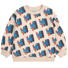 Doggy Mate All Over Baby Sweatshirt by Bobo Choses. This off white sweatshirt is a versatile essential for cooler days. Made from 100% organic cotton and designed with long sleeves, dropped shoulders, ribbed cuffs, a loose fit and shoulder snap fastening.