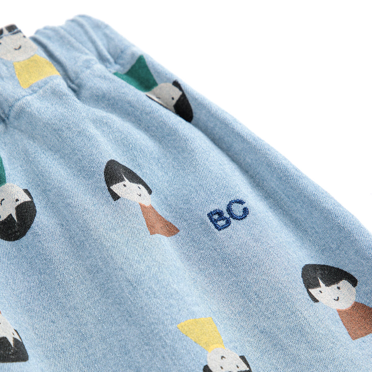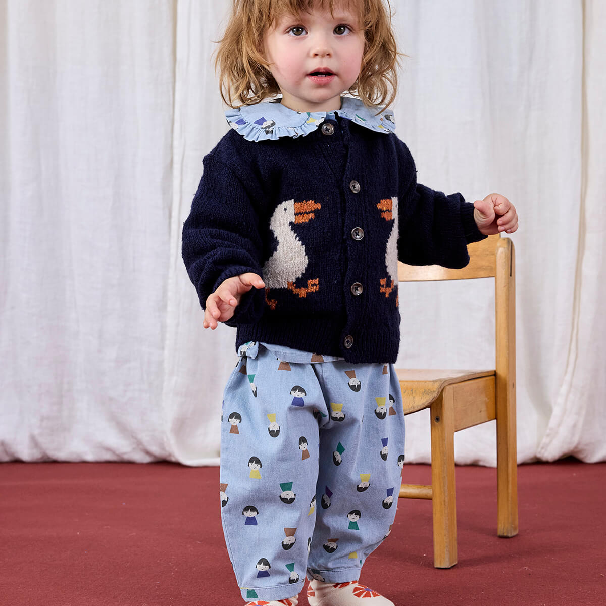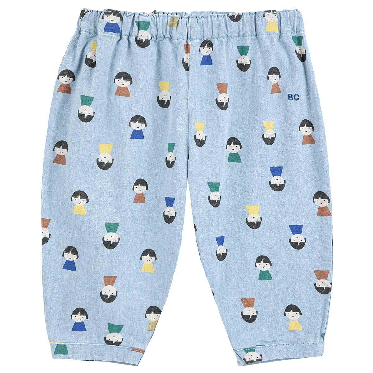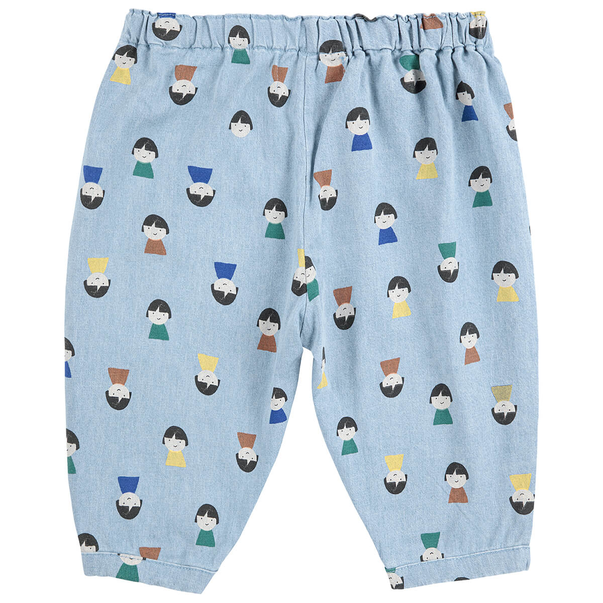 Game Pawns All Over Denim Baby Pants by Bobo Choses. Effortlessly stylish, these light blue denim pants are a playful addition to any outfit. Designed with an elasticated waistband and a cocoon fit, they are the perfect choice for everyday adventures.