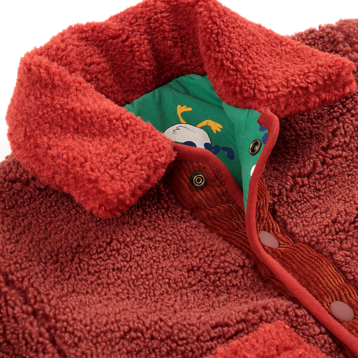 La Oca All Over Reversible Baby Jacket by Bobo Choses. Keep your little ones warm in this fun reversible faux shearling jacket. Featuring dropped shoulders, front snap fastening, a relaxed fit, and flat collar.