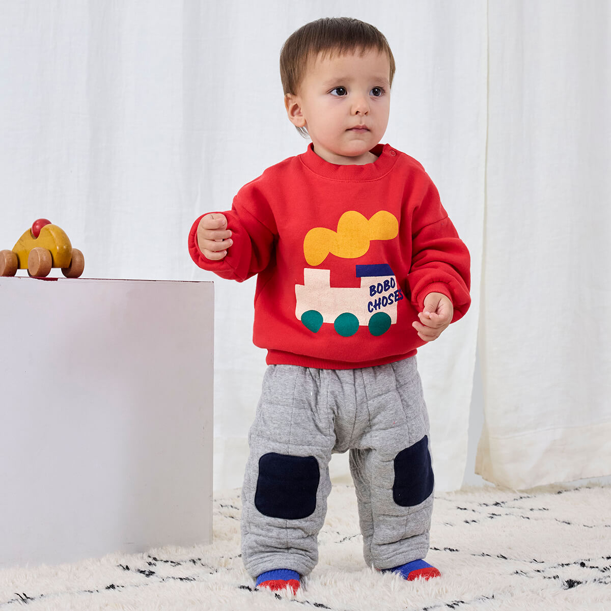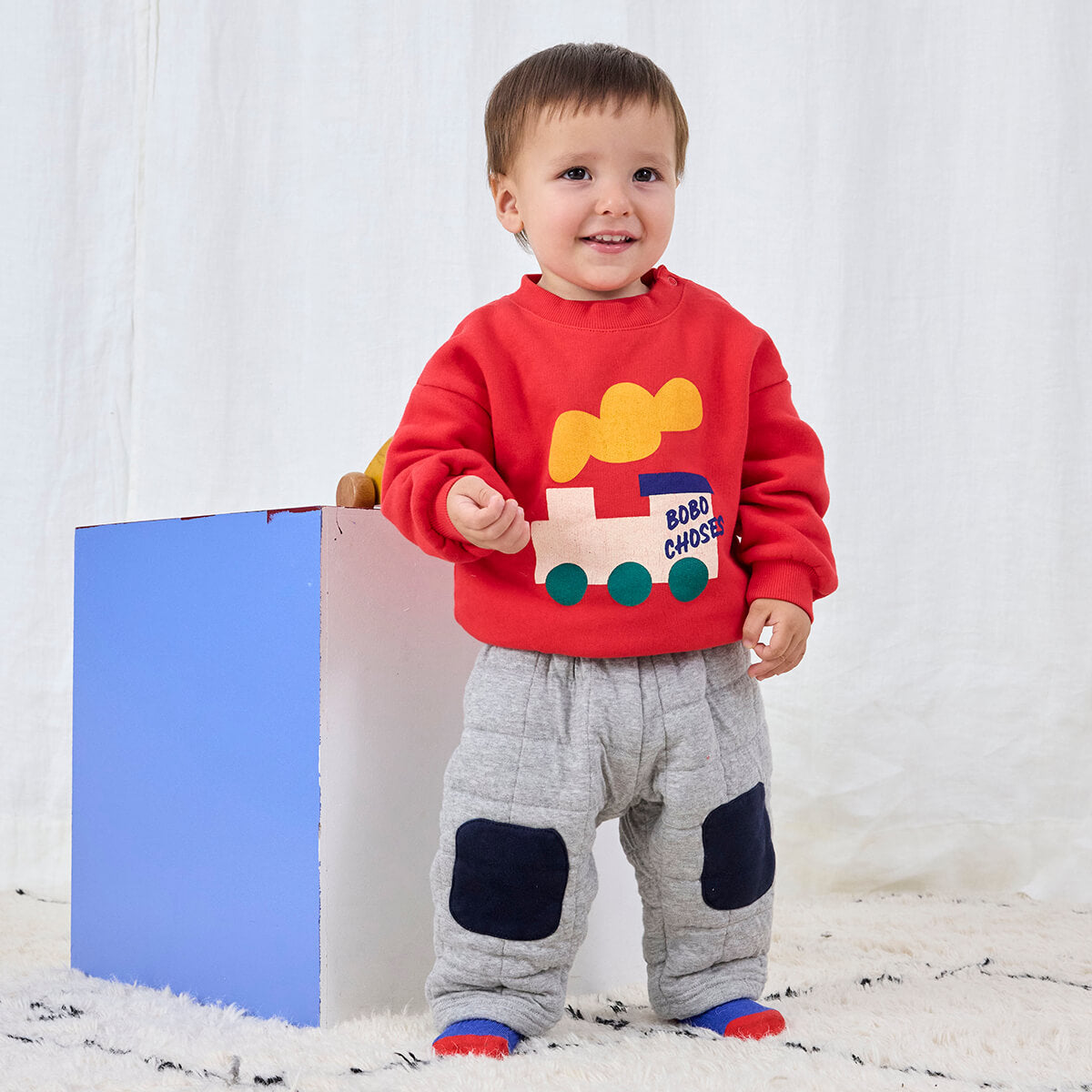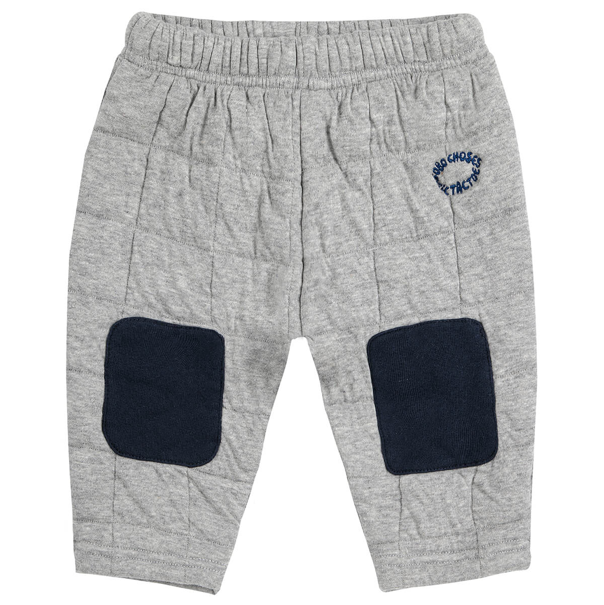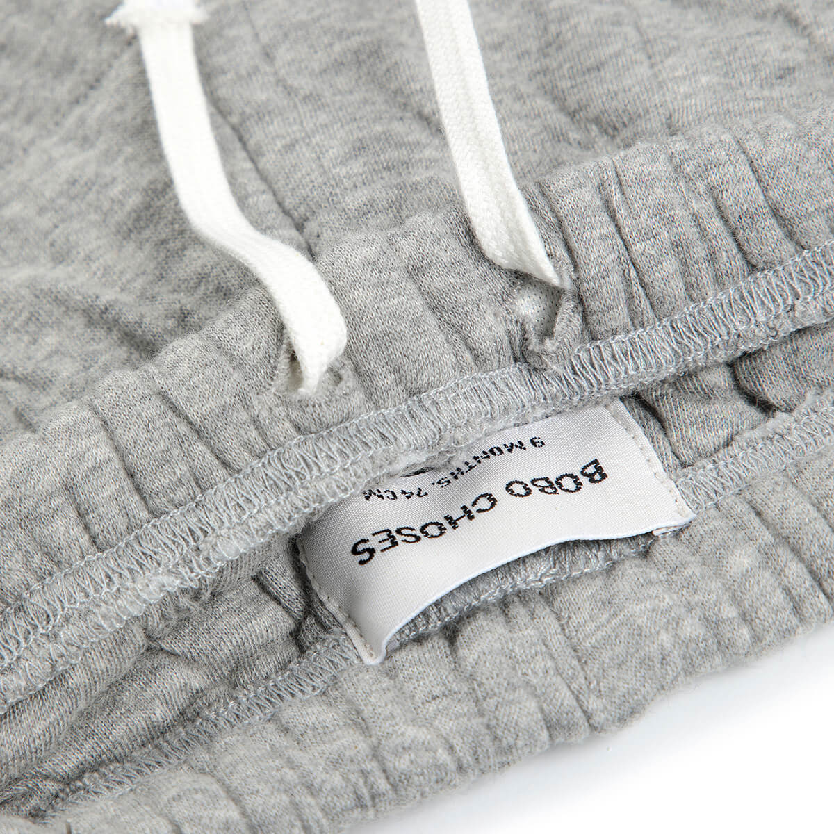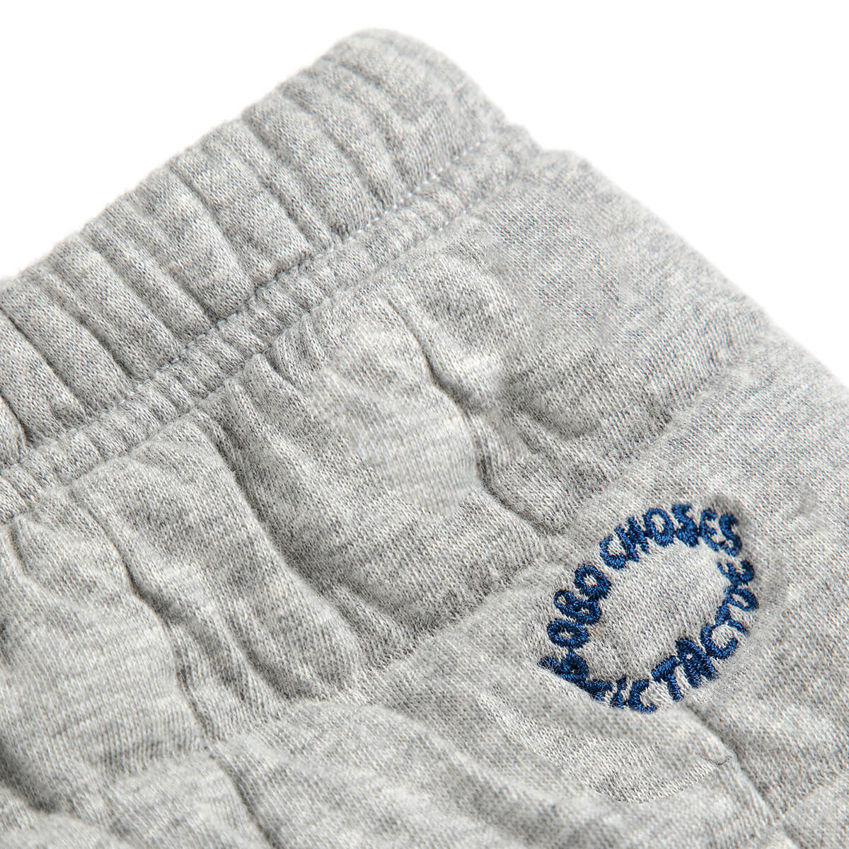 Quilted Baby Sweatpants by Bobo Choses. Functional and relaxed, these heather grey jogging bottoms are designed for active little ones. They feature an elasticated waistband, cocoon fit and knee patches for durability.