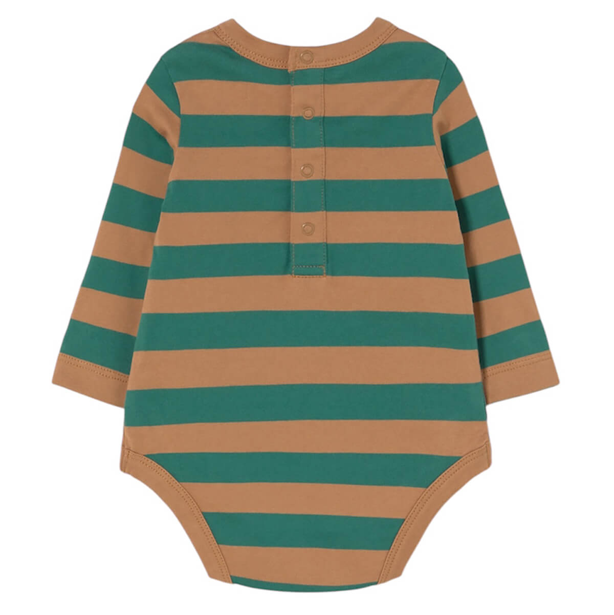 Stripes Knit Body by Tinycottons. Stripes that never go out of style—this bodysuit is all about classic comfort with a twist. Crafted from 100% organic cotton, combines comfort, style, and sustainability. The short-sleeved design ensures a relaxed fit, while the convenient snap-bottom opening makes diaper changes a breeze.