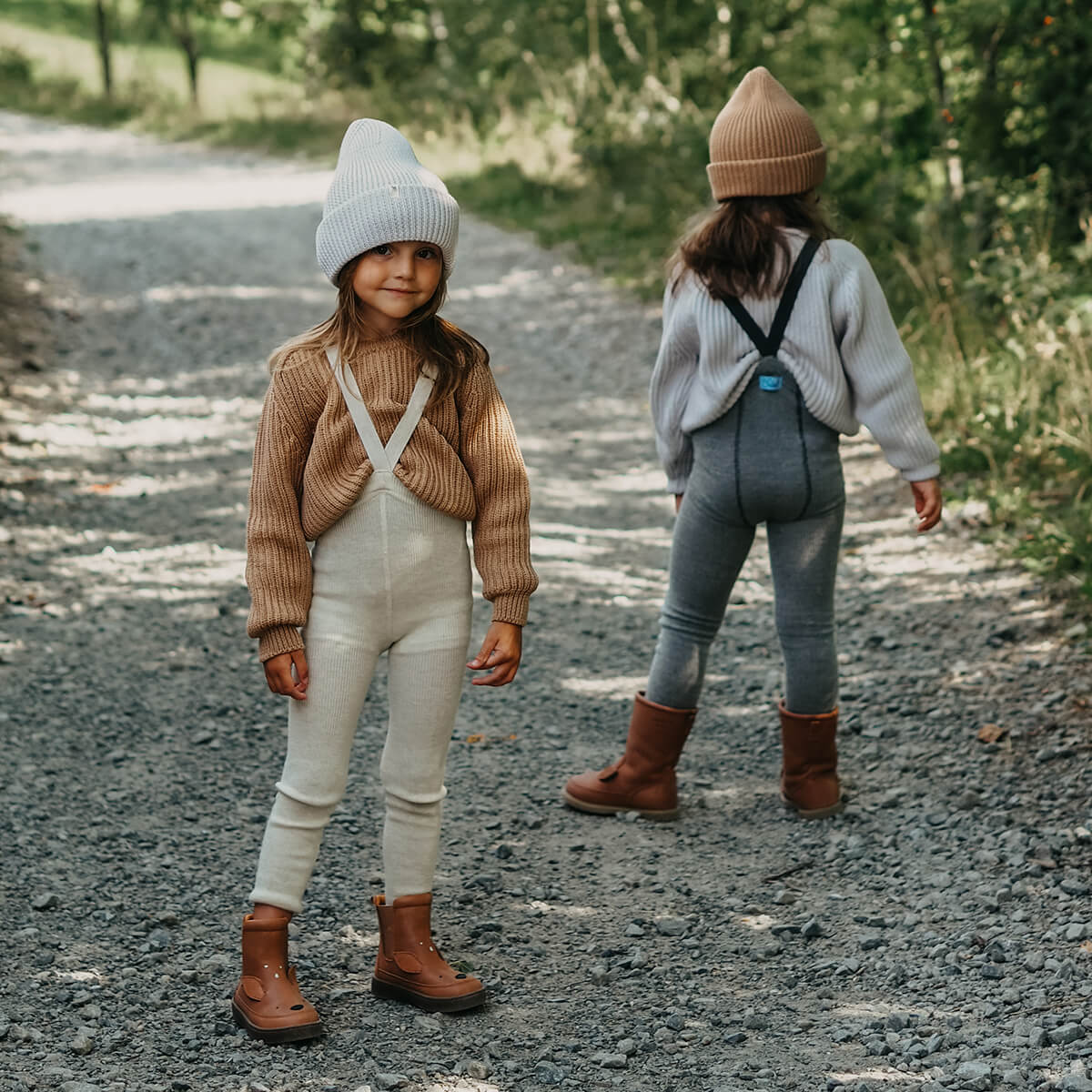 Woolly footless tights with braces by Silly Silas. These woolly tights made from a combination of merino wool and organic cotton have a lusciously soft feel, ensuring best comfort and keeping your little one warm and cozy during any adventure.