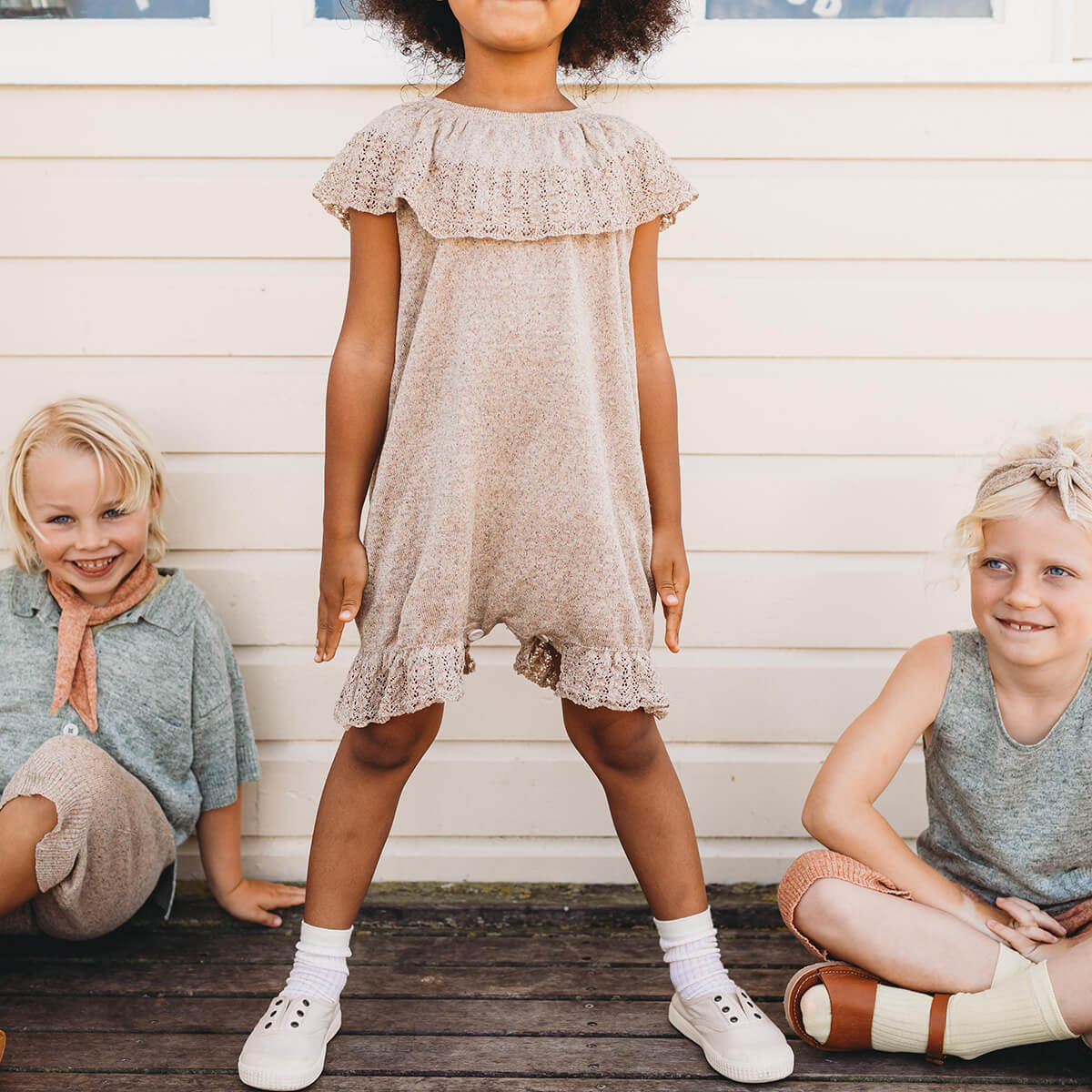 Lirica Romper in Apricot by 1+ in the Family - Last One In Stock - 12 Months