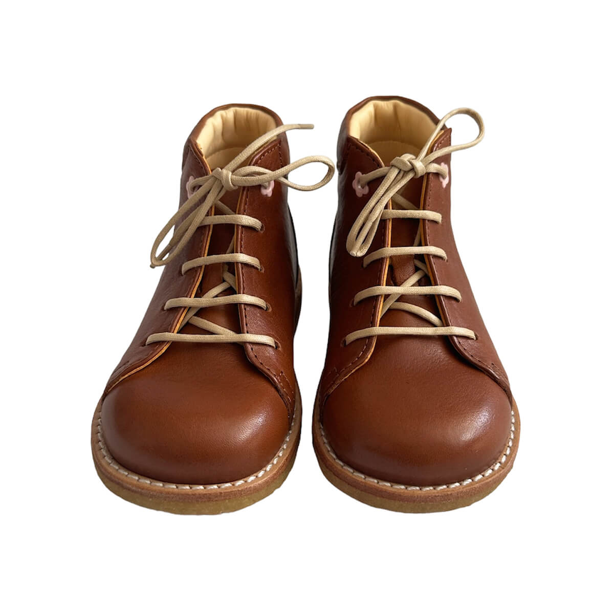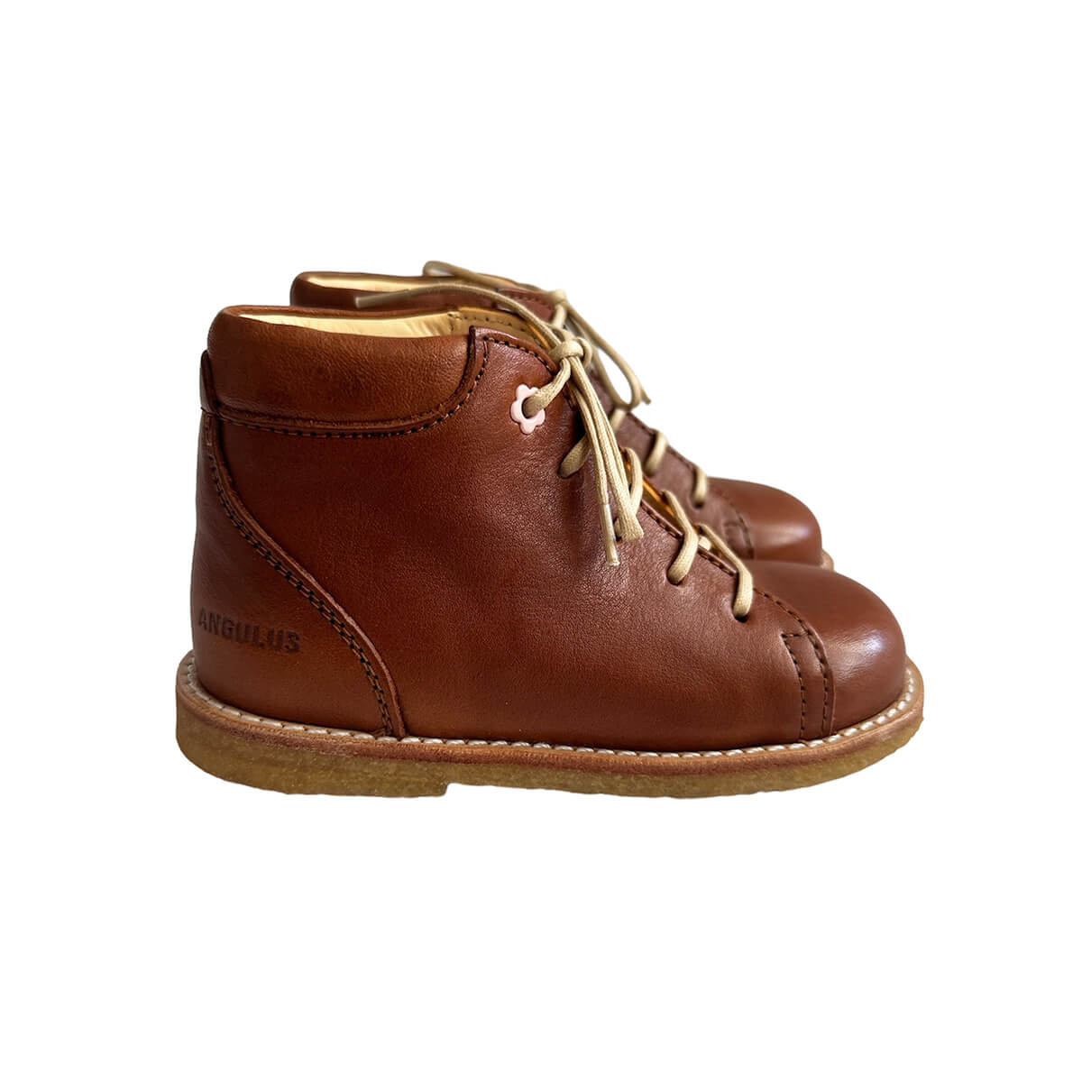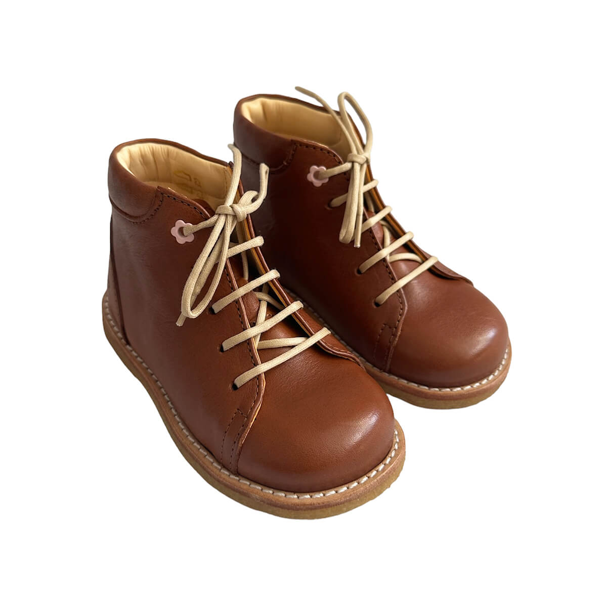 Lace Up Starter Boots in Cognac (Flower Eyelet) by Angulus - Last Ones In Stock - 21-25 EUR