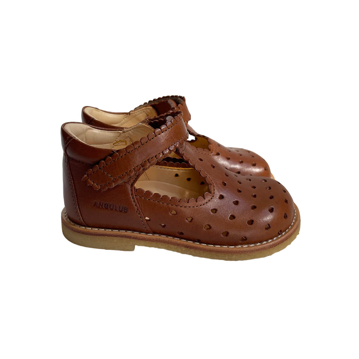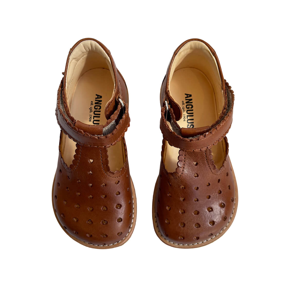 Wide Fit Mini Hearts Starter Mary Janes in Cognac by Angulus
