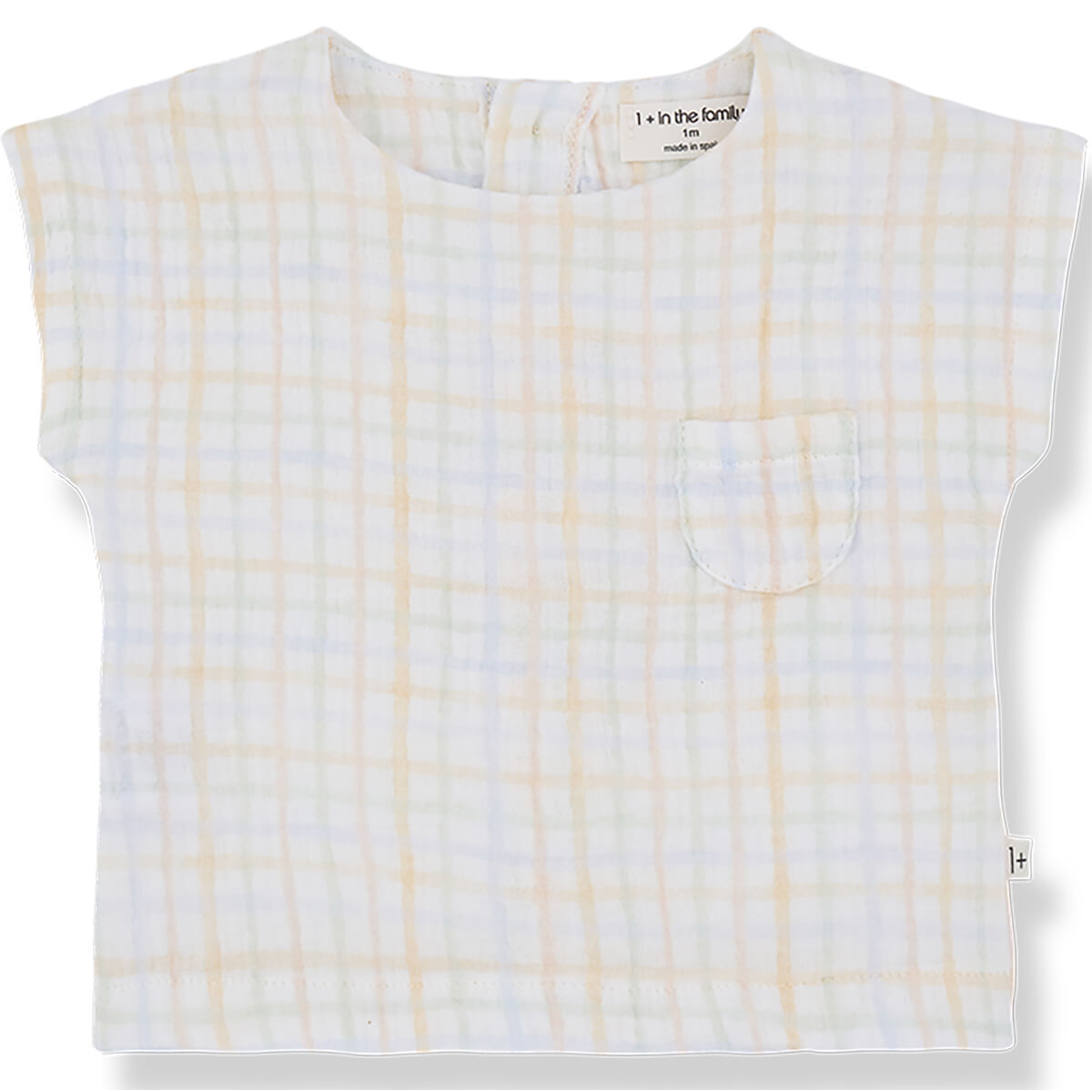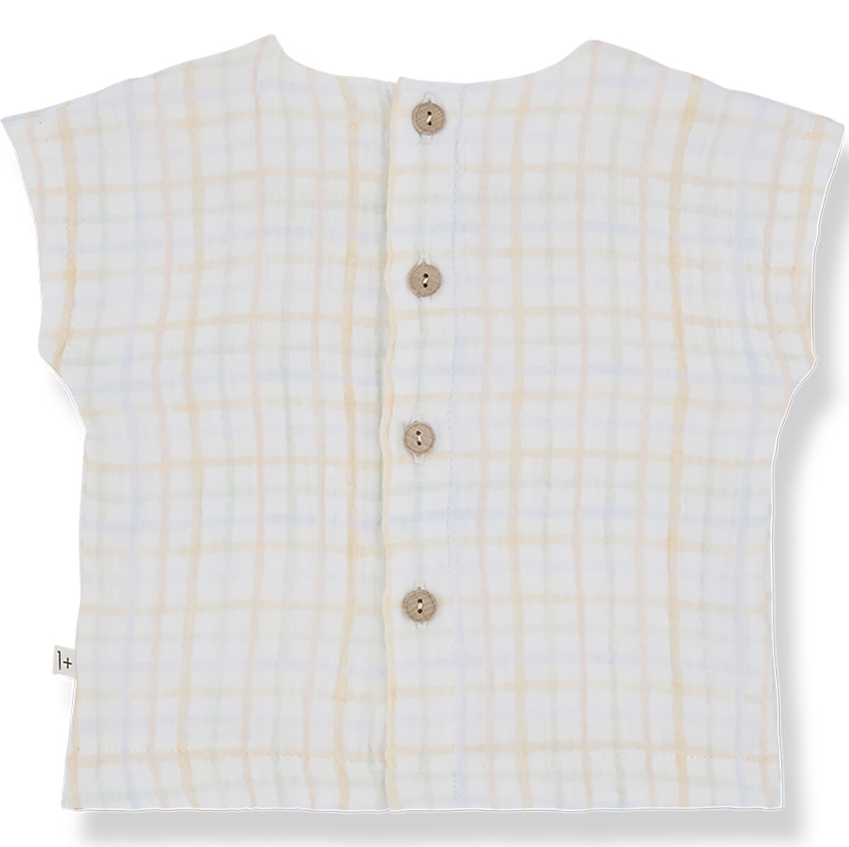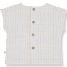 Eder Top by 1+ in the Family. Short-sleeve t-shirt in a super soft check muslin fabric with raw edge detailing.