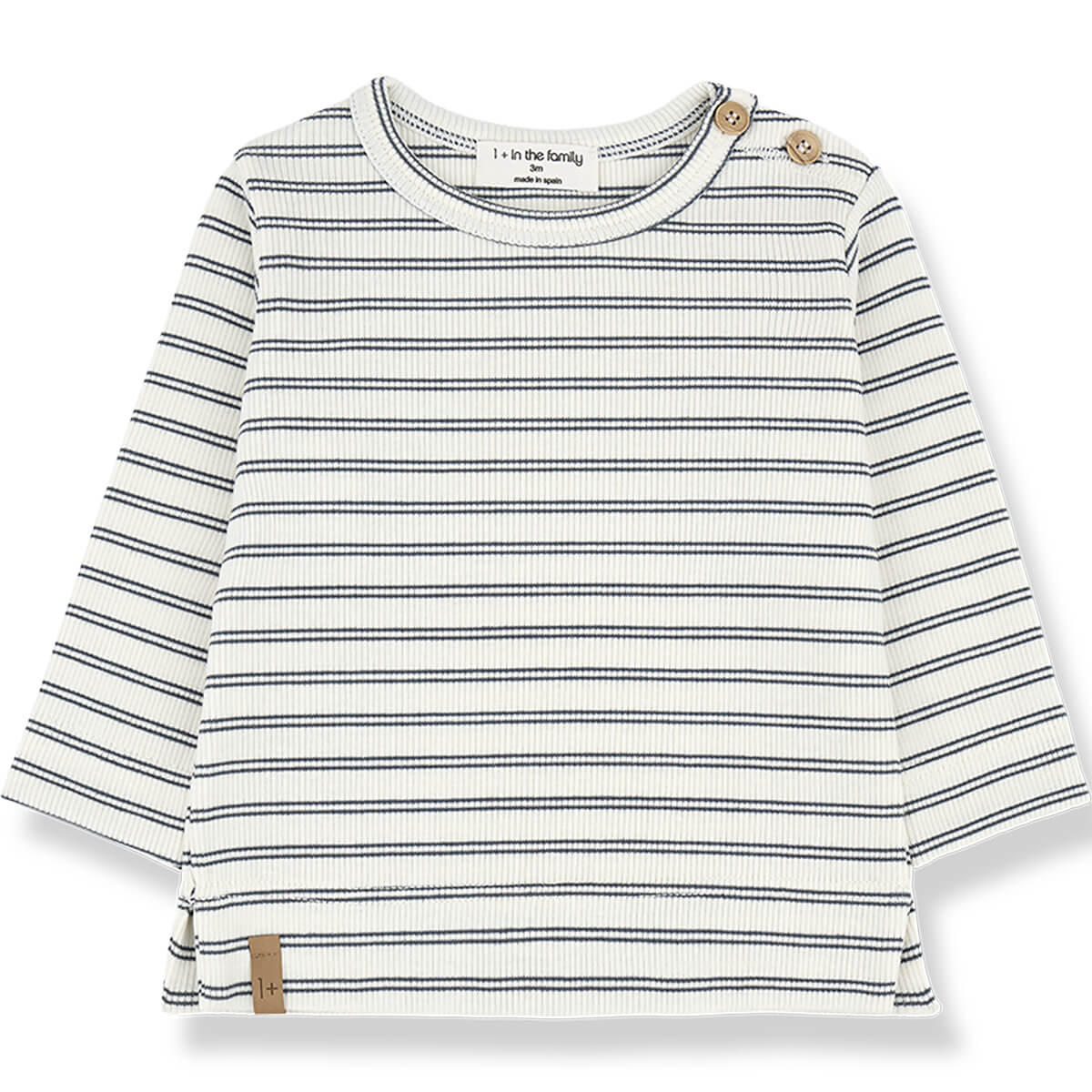 Gerard Top by 1+ in the Family. Long-sleeve t-shirt in a striped ribbed jersey fabric with wooden button detailing.