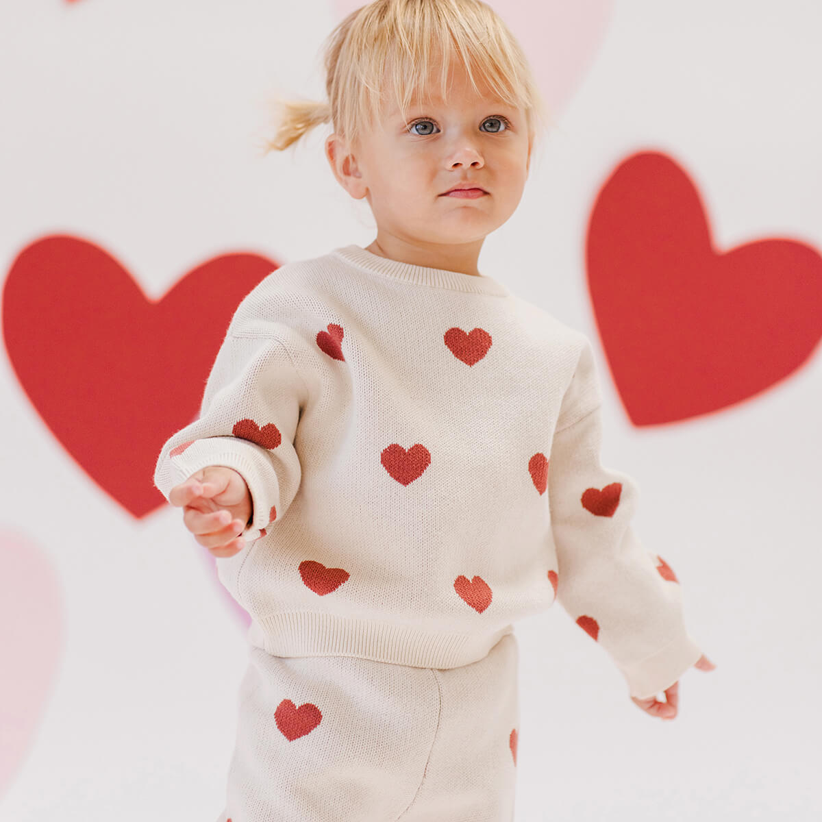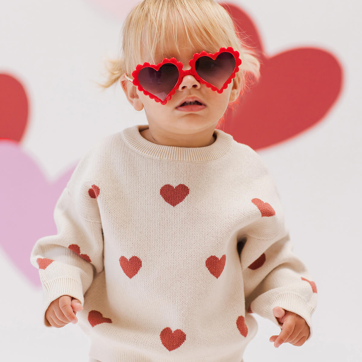 Heart Knit Sweater by Quincy Mae. Heart eyes only for this Heart Knit Sweater. This cosy jumper features and all over heart print.