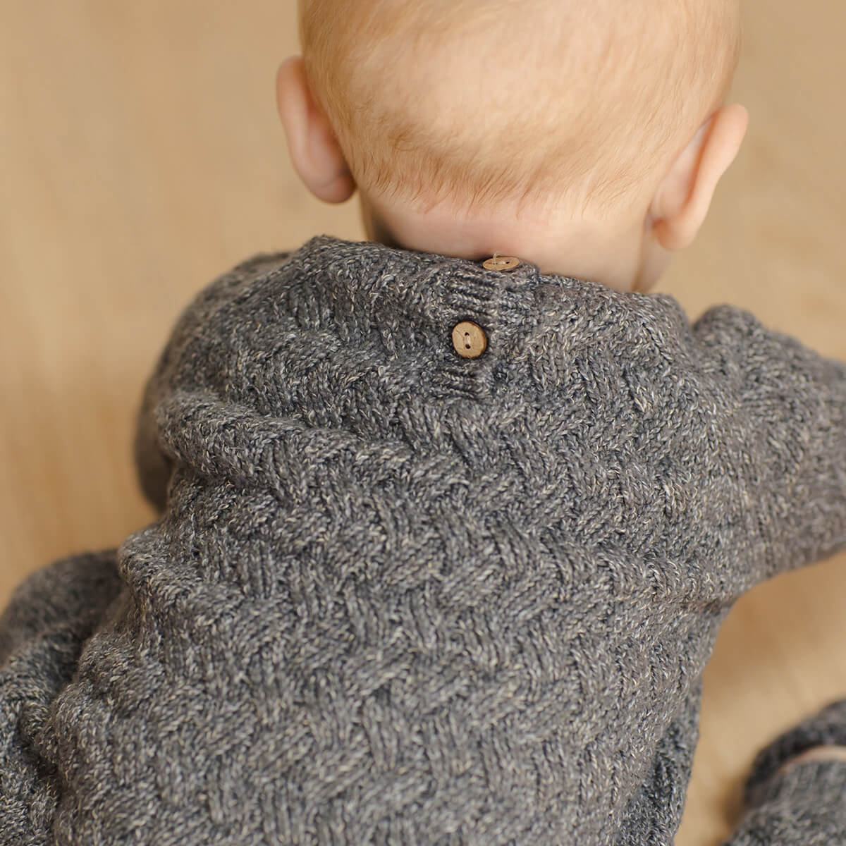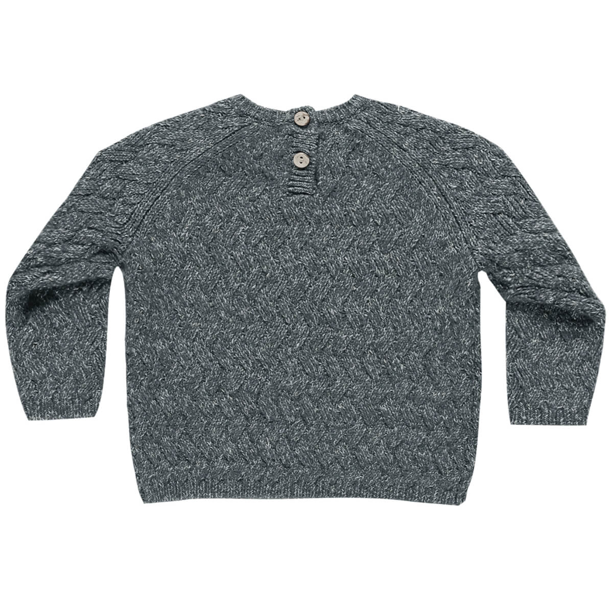Knit sweater by Quincy Mae. Pullover heathered knit jumper that features a button-back neck closure in heathered indigo colourway.