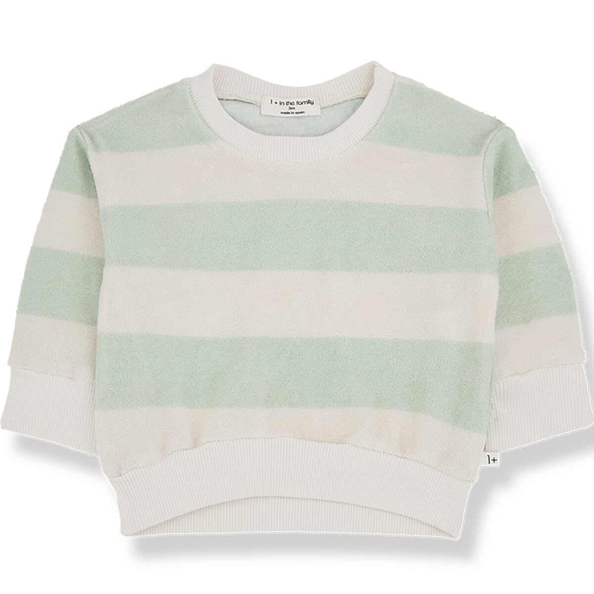 Stefano Sweater by 1+ in the Family. Long-sleeve striped jersey sweatshirt style top in a super soft terry fabric. This sweatshirt has a ribbed neck and cuffs.