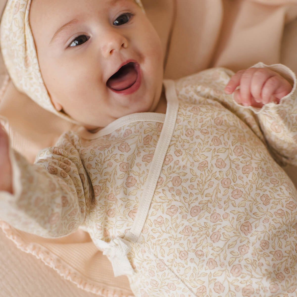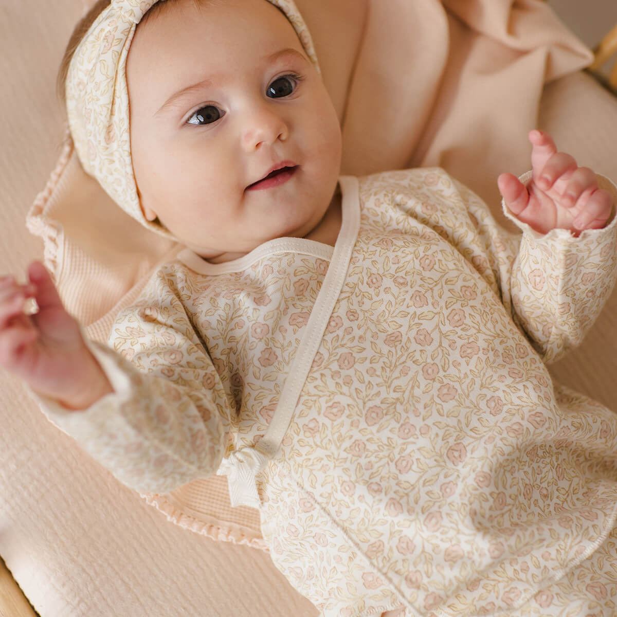 Wrap Top and Footed Pant Set in Primrose by Quincy Mae - Last Ones In Stock - 0-6 Months