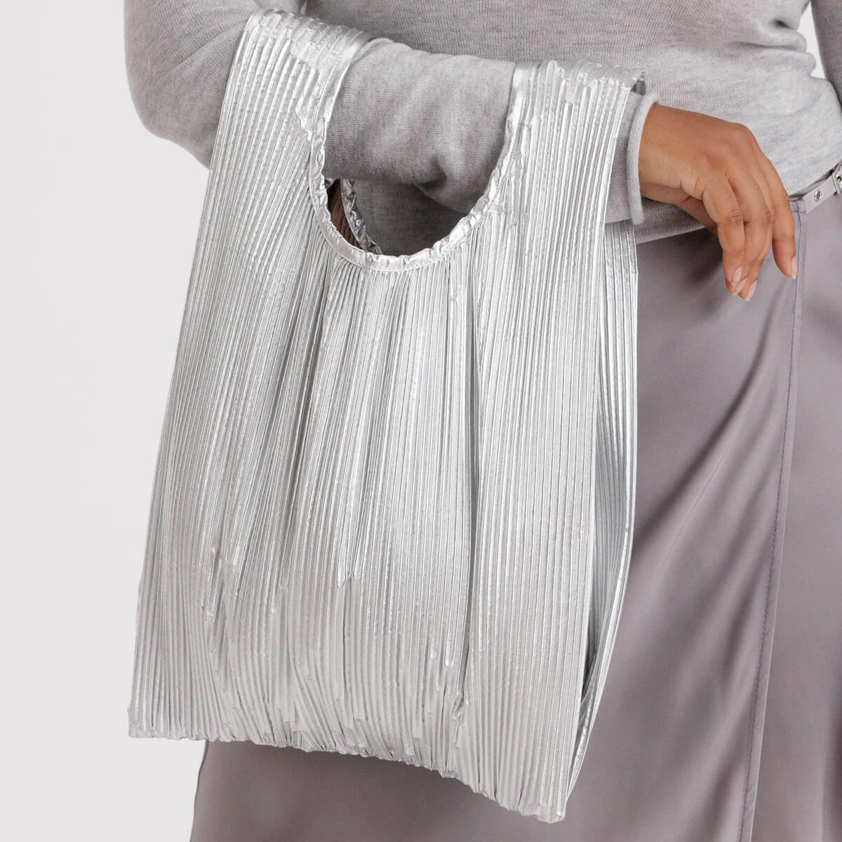 Pleated Bag in Metallic Chrome by Baggu