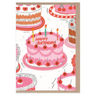 Cherry Cake Birthday Greetings Card by Rumble Cards. Celebrate birthdays with the delightful Birthday Cake themed greeting card, designed in collaboration with Tess Smith-Roberts. This card is filled with super fun illustrations of cakes, each adorned with playful designs and cheerful cherries.