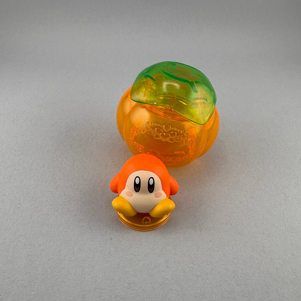 There are four Kirby characters in this Gachapon series: Kirby (Red Flower), Waddle Dee (Orange Flower), Kirby Parasol (Yellow Flower) and Elfilin (Blue Flower).