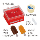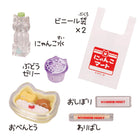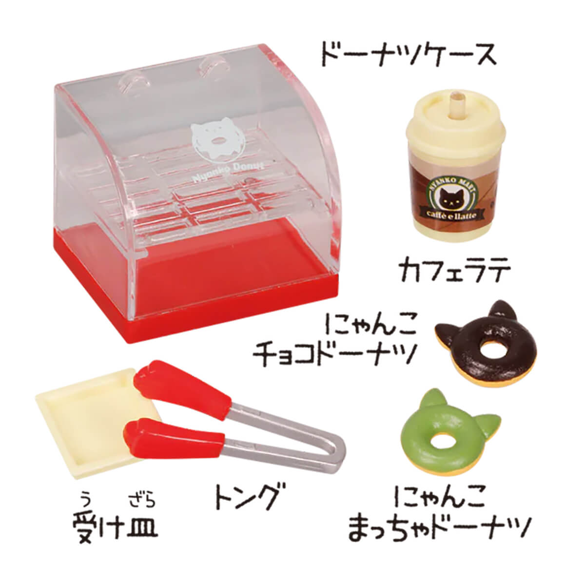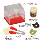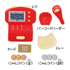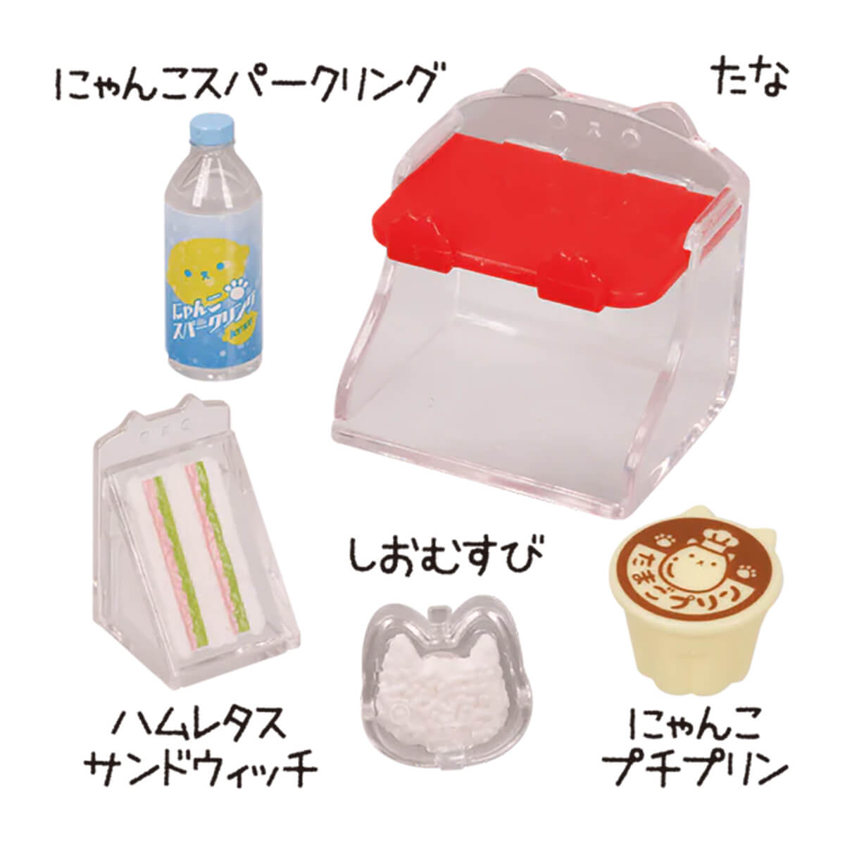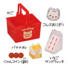 There are six different Nyanko Mart sets in this Gachapon series: Ice Box with ice cream and ice lollies, Donut Case with cat donuts, Tana supermarket shelf with cat lemonade and sandwich, Basket with strawberry sandwich and banana milk, Plastic bag with bento and cat water bottle and Cash register with barcode reader and money.