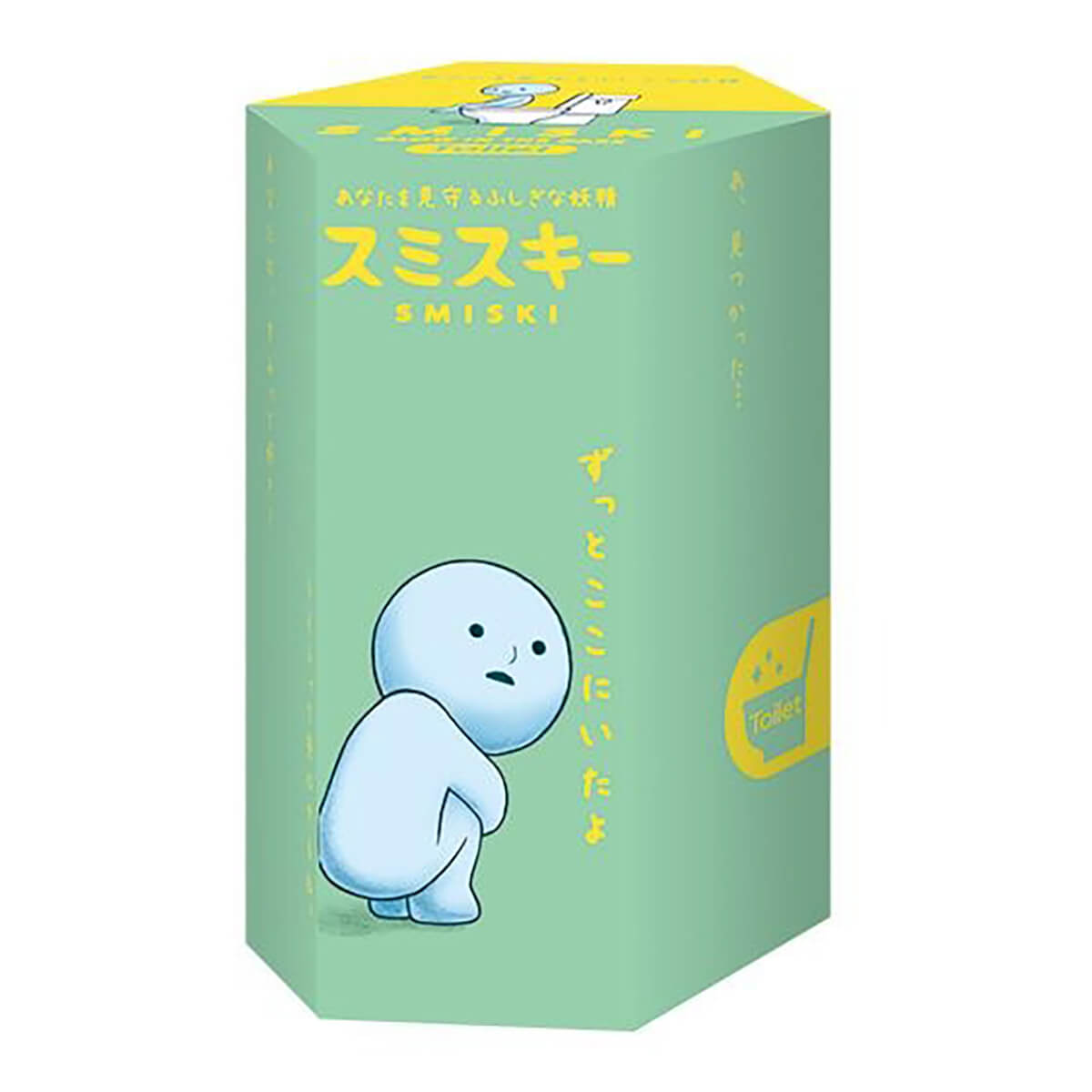 Smiski Toilet Series collectable dolls. Smiski is a curious little creature that loves hiding in small spaces and corners of your room. Although they like to stay hidden, you might recognize at night as they mysteriously glow in the dark. In the Bathroom and Toilet series, a new blue Smiski has been found in the corners of the bathroom! This series has a blue colour and is made of the same phosphorescent material that makes Smiski glow! Look out for Smiski Peek-a-boo, a Smiski that likes to peek from the inside of the Toilet Paper roll and Smiski Helping Out, a Smiski that wants to help in case the paper runs out. But doesn't realise that the toilet paper is too tiny. Look out too for the three tiny Smiski Little Smelly set, who are always holding breath because they are very sensitive to smell!