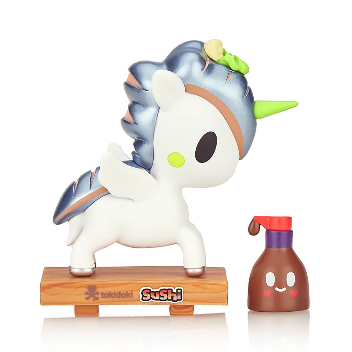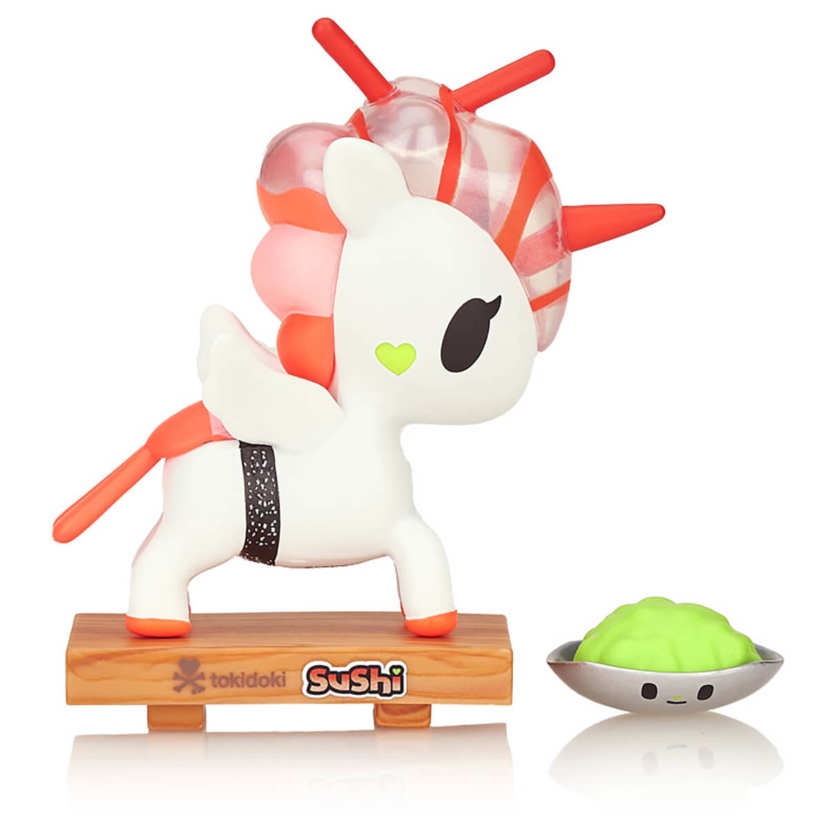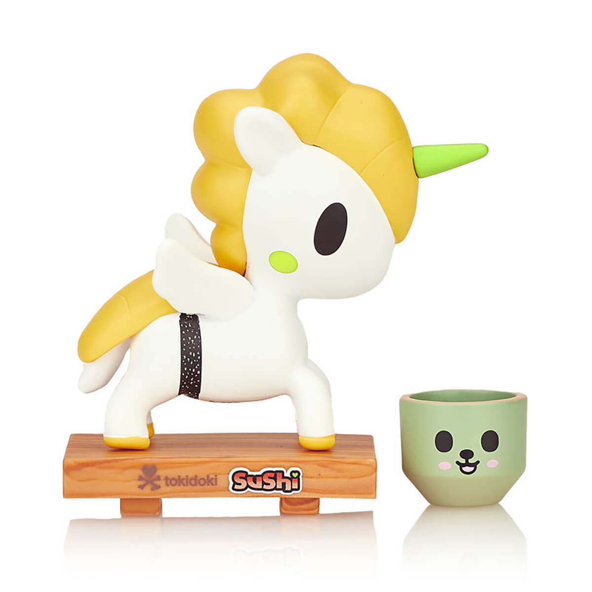 Sushi Unicorno Blind Box by Tokidoki. Sushi has been a favourite food in Japan since it was first popularised during the Edo period. This tasty delicacy is now popular around the world, and the Sushi Unicornos are here to honor this amazing, traditional food. Each Sushi Unicorno Blind Box contains one of seven sushi-themed Unicornos, and each Unicorno comes with a serving plate to stand on and its own sushi friend accessory. Open a Sushi Unicorno Blind Box and savour the delicious fun!