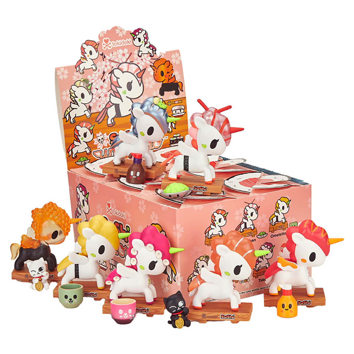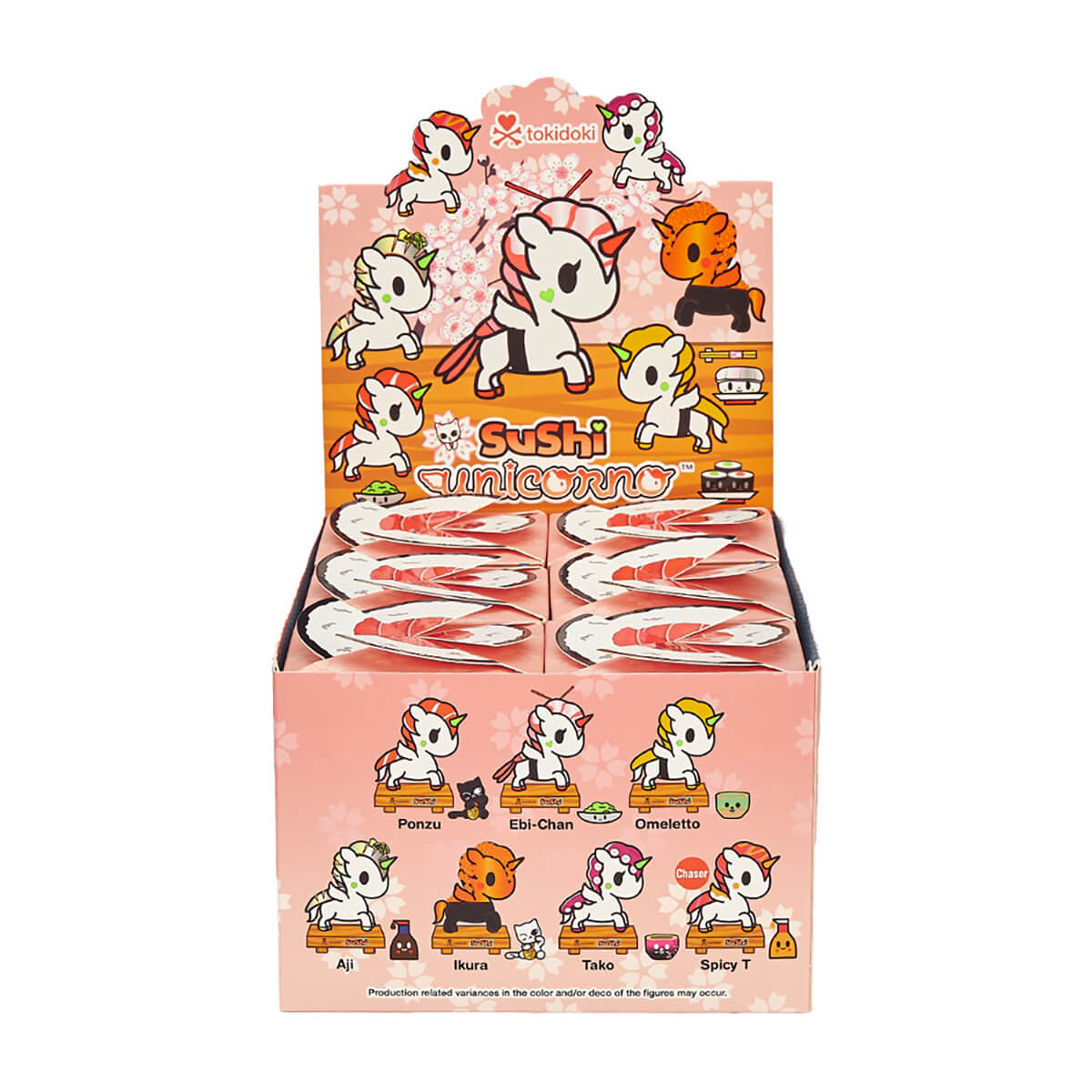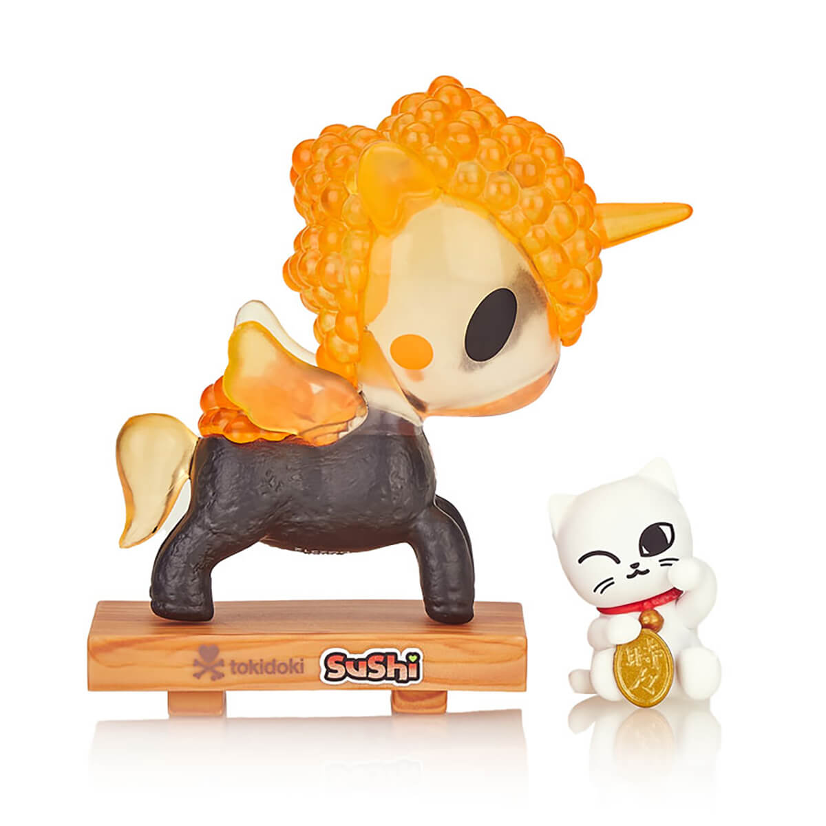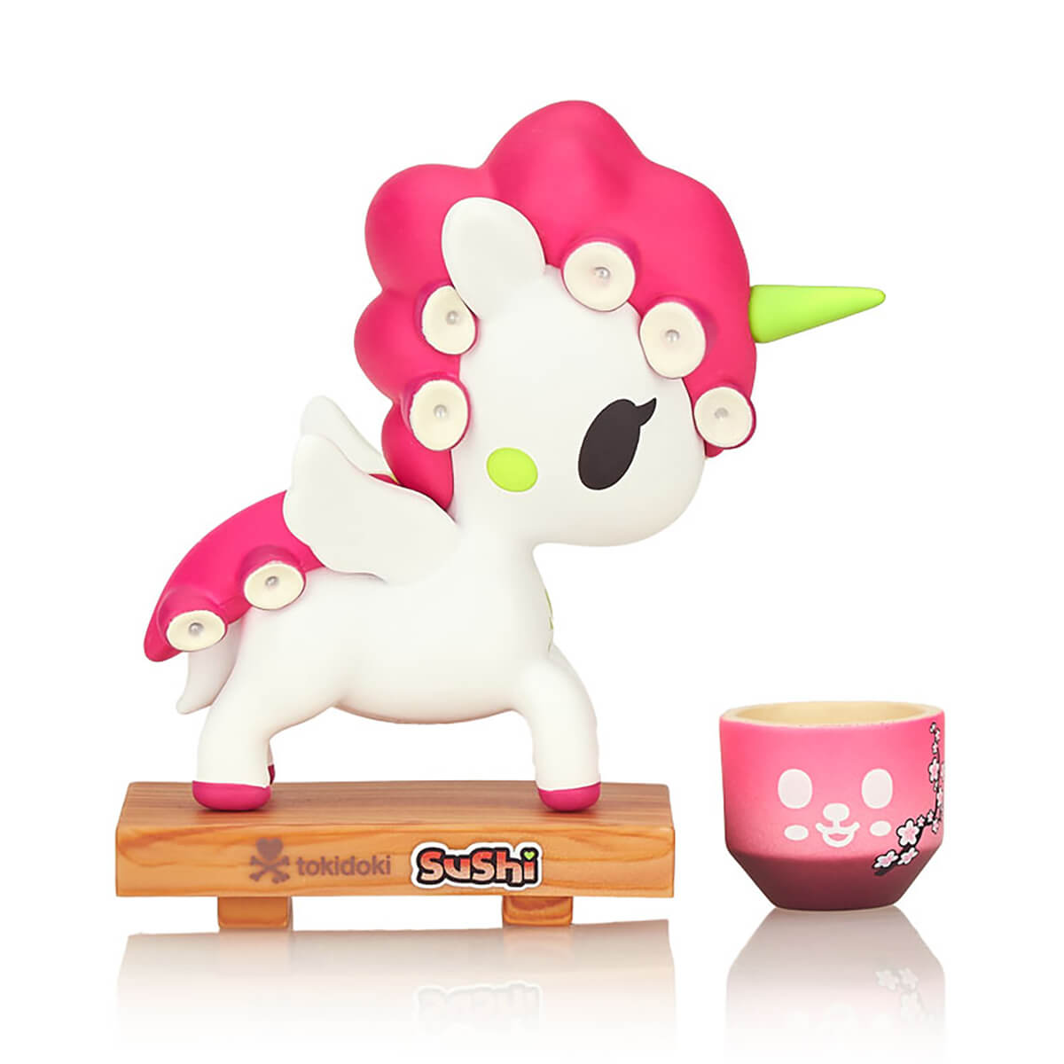 Sushi Unicorno Blind Box by Tokidoki. Sushi has been a favourite food in Japan since it was first popularised during the Edo period. This tasty delicacy is now popular around the world, and the Sushi Unicornos are here to honor this amazing, traditional food. Each Sushi Unicorno Blind Box contains one of seven sushi-themed Unicornos, and each Unicorno comes with a serving plate to stand on and its own sushi friend accessory. Open a Sushi Unicorno Blind Box and savour the delicious fun!