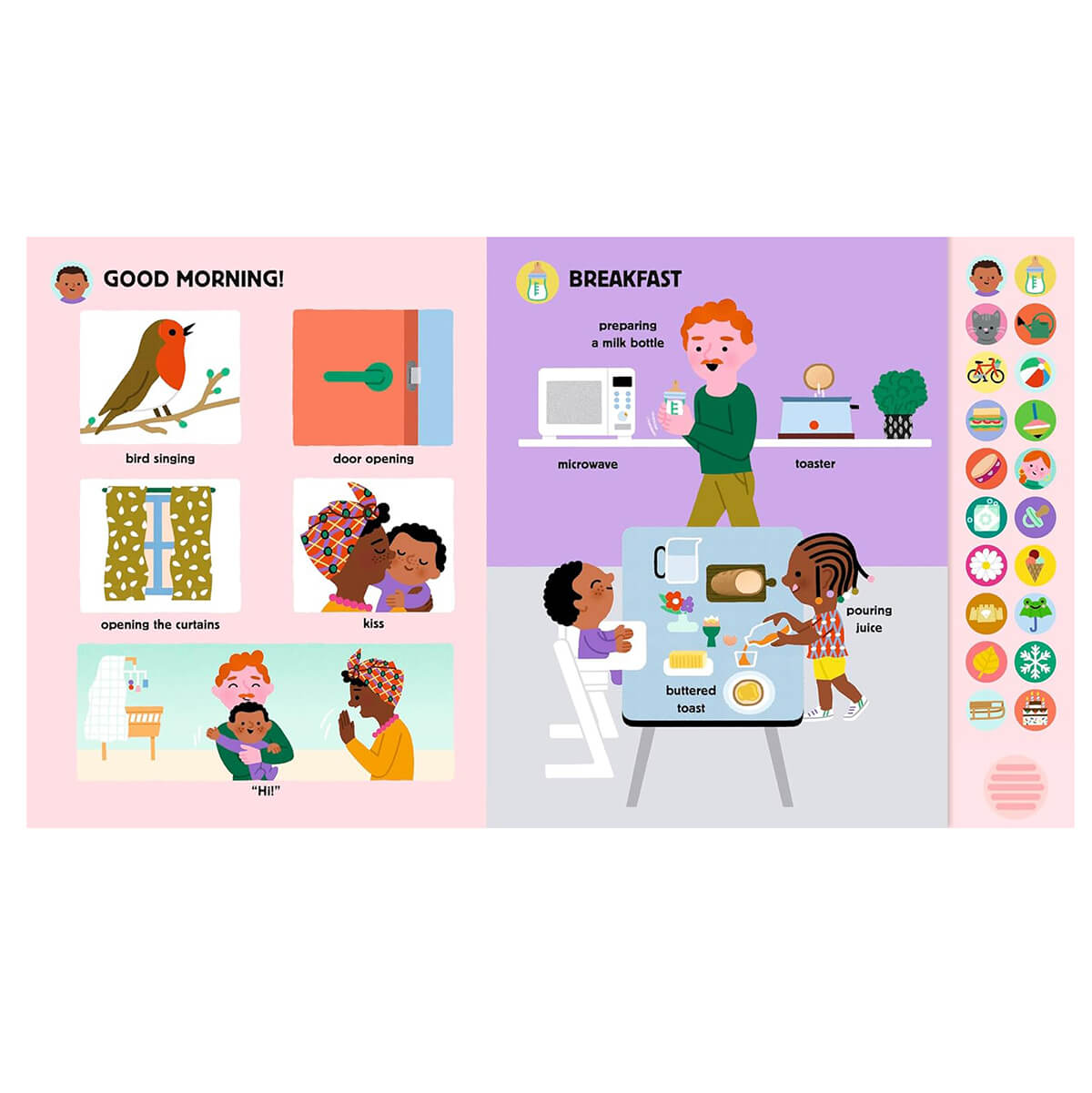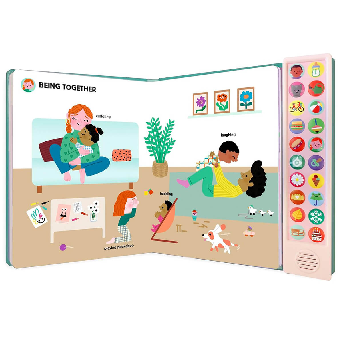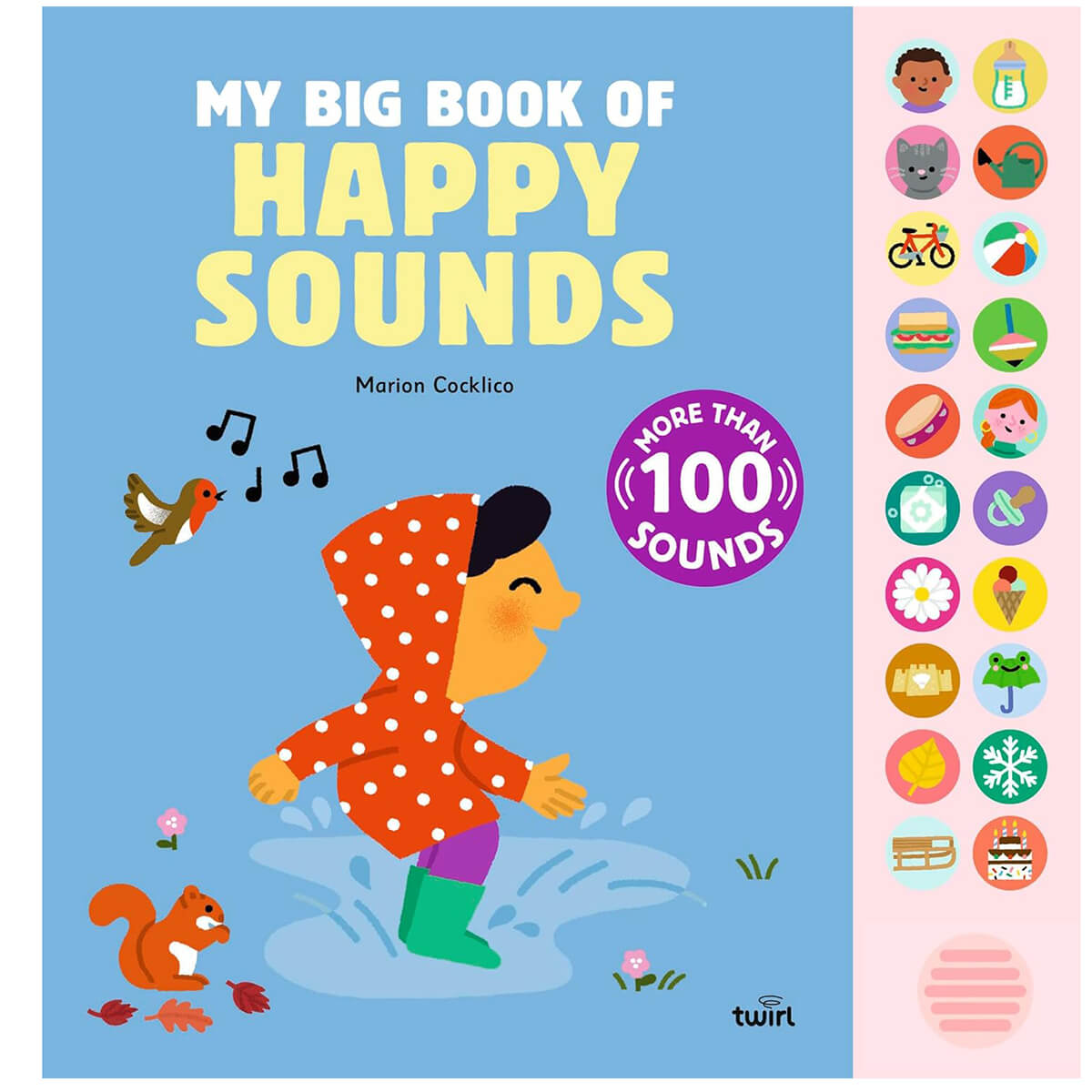 My Big Book of Happy Sounds by Marion Cocklico. Good morning! Kiss kiss! Clapping and laughing… Who or what’s making that sound? Press the buttons to find out! An interactive sound book: Young readers develop important listening skills as they explore sounds and words in their language development. Whether it’s rain falling or a bird singing, children learn to recognize sounds that make them feel good and happy, and that these sounds can be found everywhere and all year round.