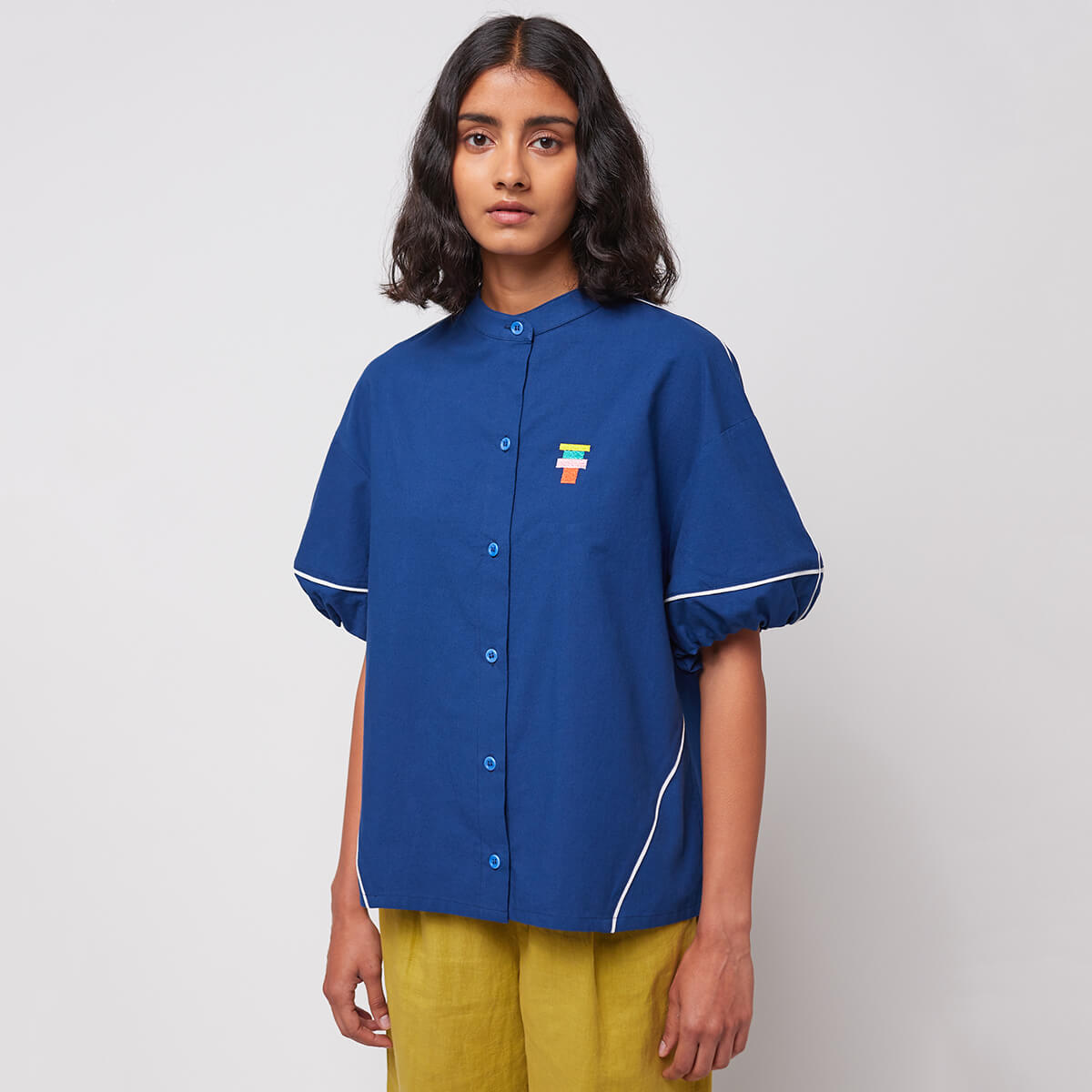 Contrast Trim Puff Sleeve Shirt by Bobo Choses Womenswear