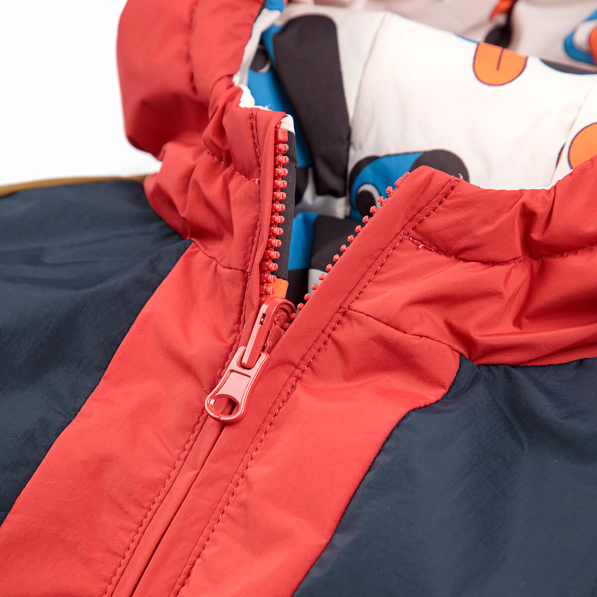Doggy Mate All Over Reversible Baby Jacket by Bobo Choses. Keep your little ones cosy and warm in this stylish reversible jacket. Featuring raglan sleeves, front zip closure, elasticated cuffs, seam pockets and a hood for extra warmth.