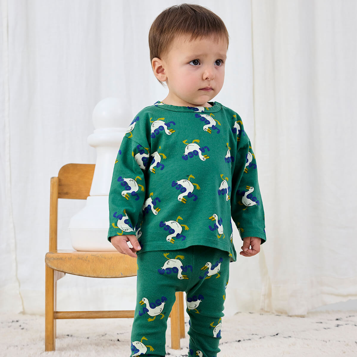 La Oca All Over Long Sleeve Baby T-Shirt by Bobo Choses. This fun tee features long sleeves, a round neck, a loose fit and shoulder snap fastening for easy, everyday dressing. Made from 100% organic cotton, providing all-day comfort.