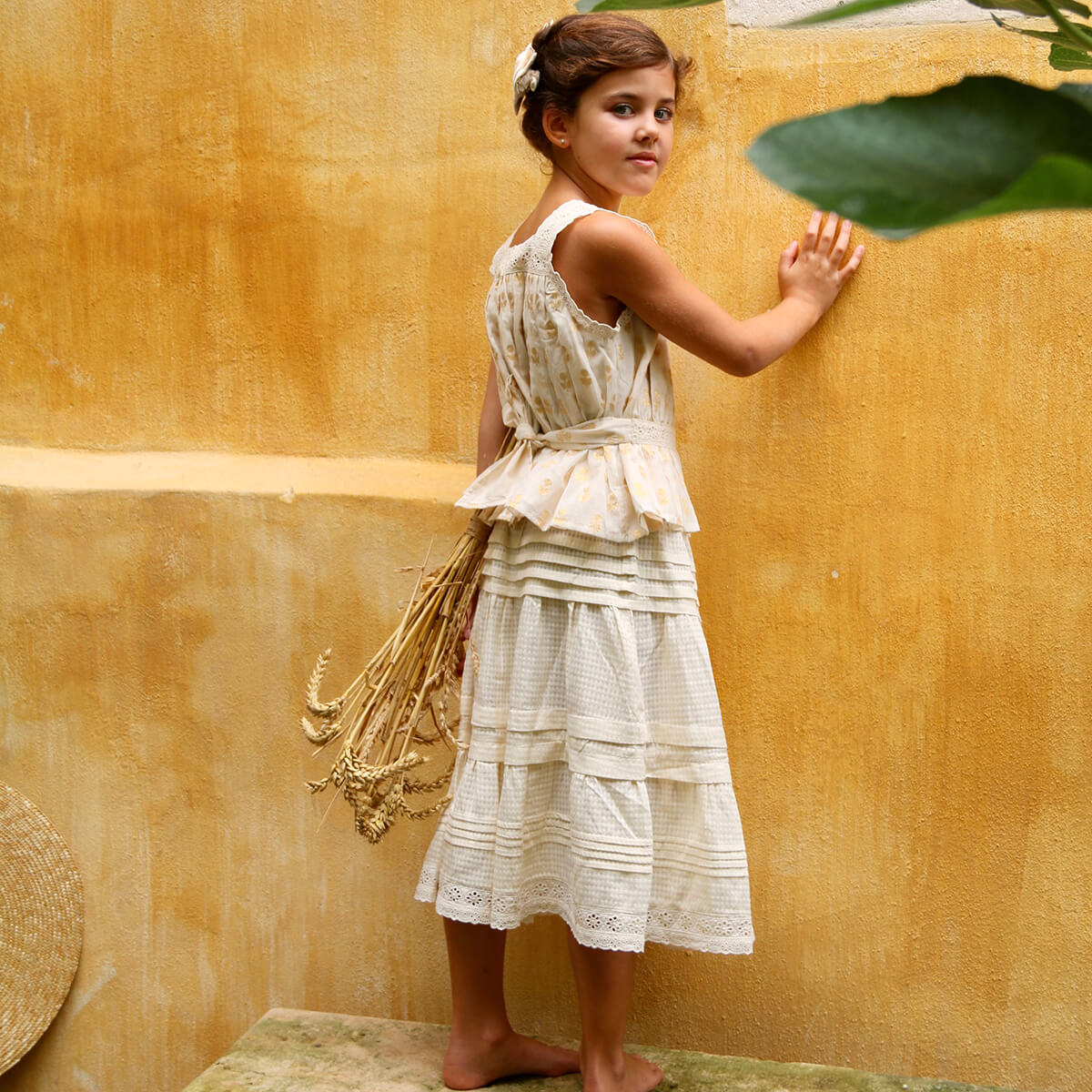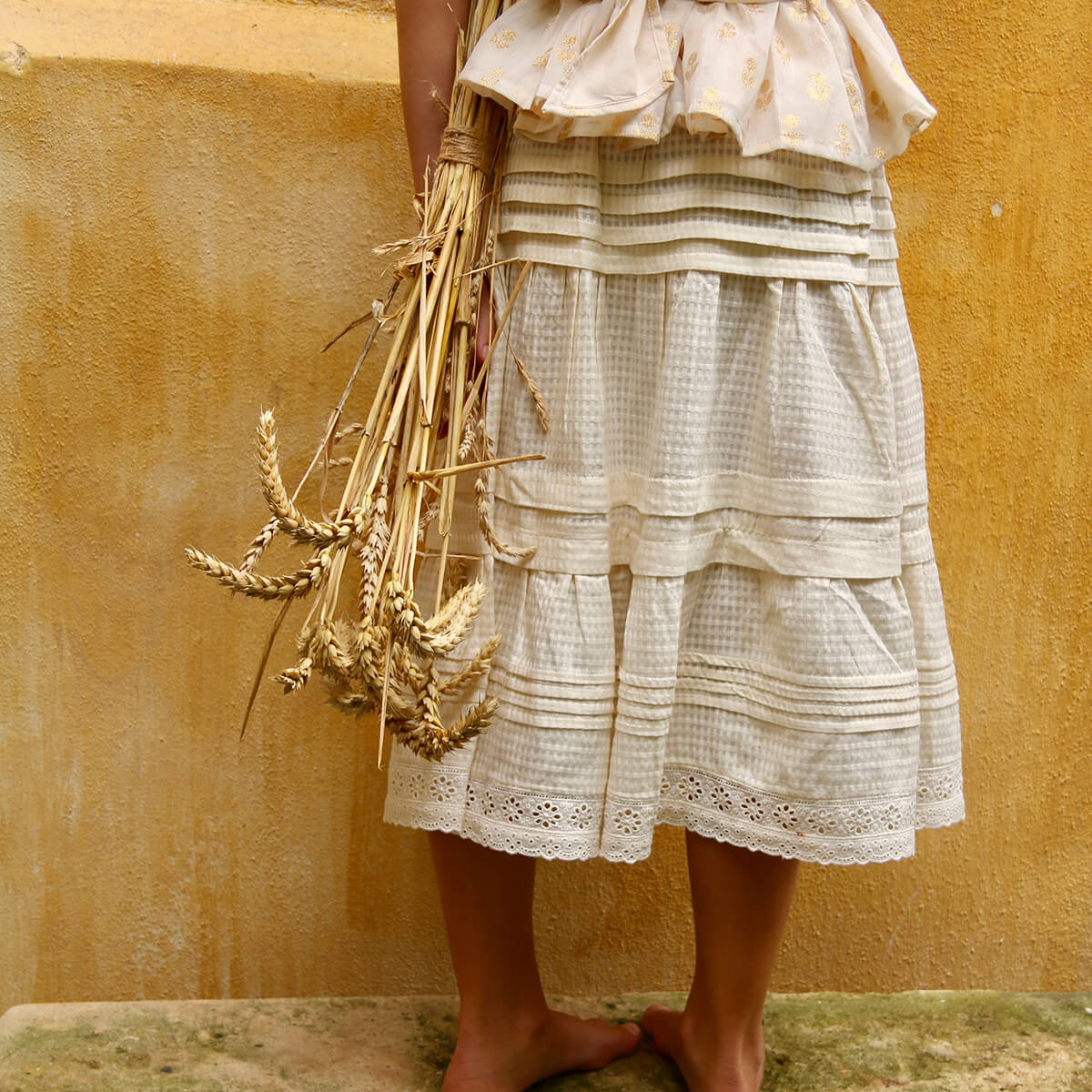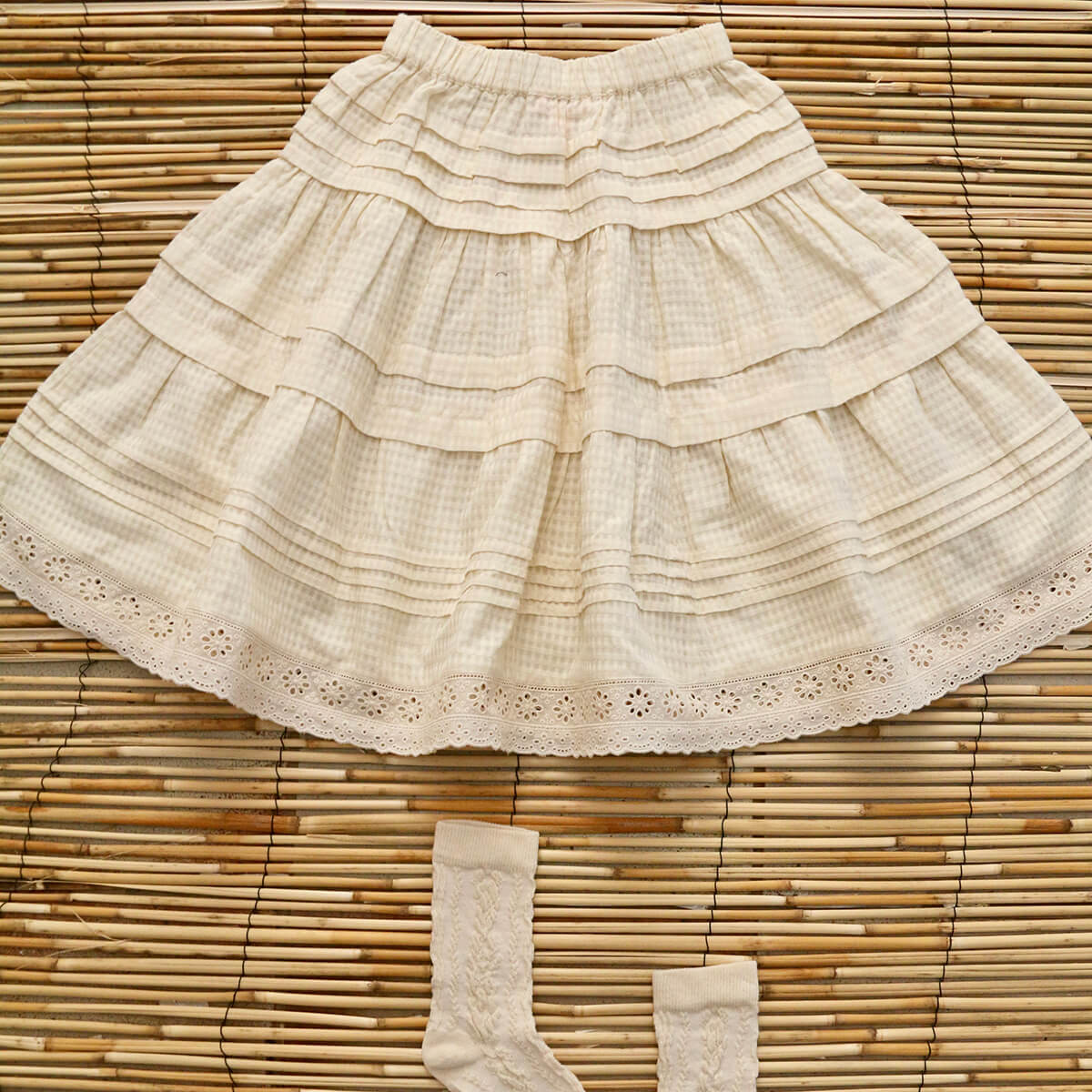 Long Skirt by Bonjour. A longer length layered skirt with pretty broderie anglaise edging.