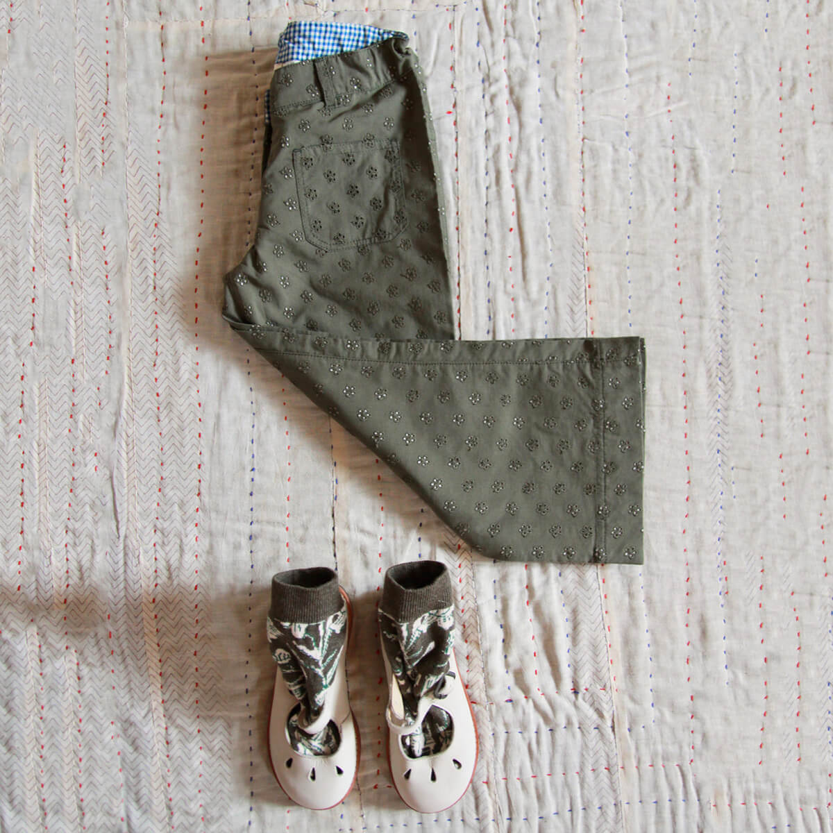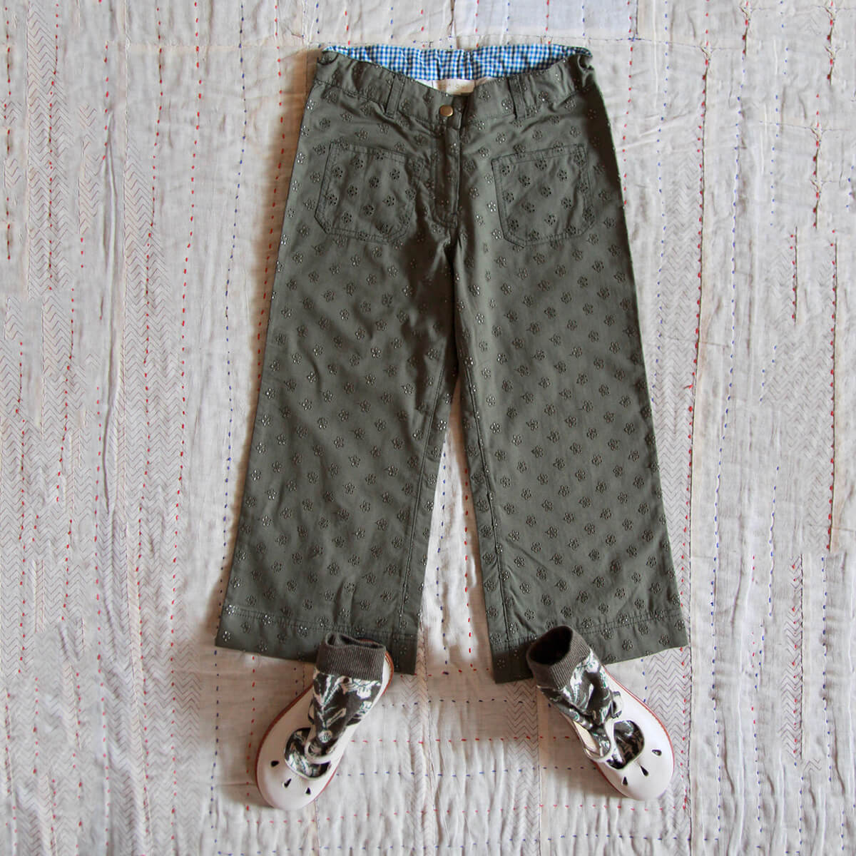Pants in Khaki Green Broderie Anglaise by Bonjour - Last Ones In Stock - 6-12 Years