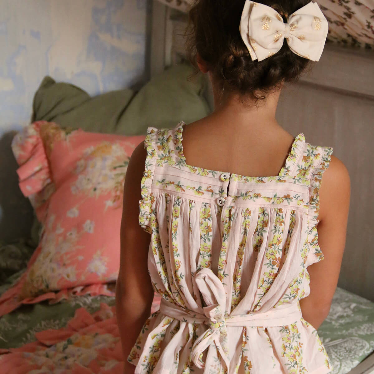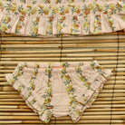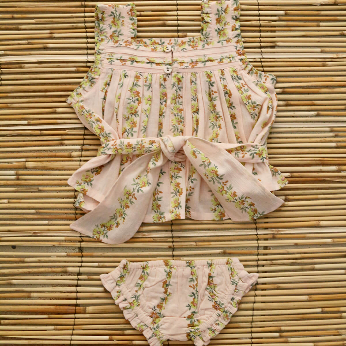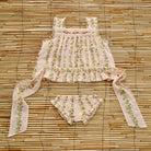 Top and Panty Set by Bonjour. A pretty sleeveless blouse with tie waist and floral embroidery. With matching frilled edge panties.