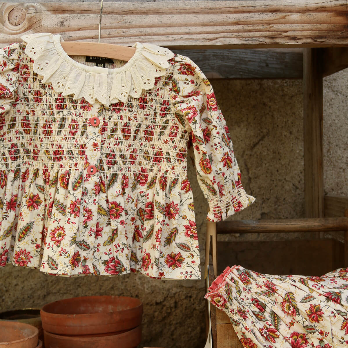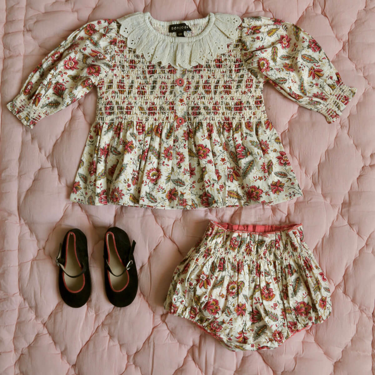 Baby Set by Bonjour. Floral collared blouse with matching reversible bloomer.