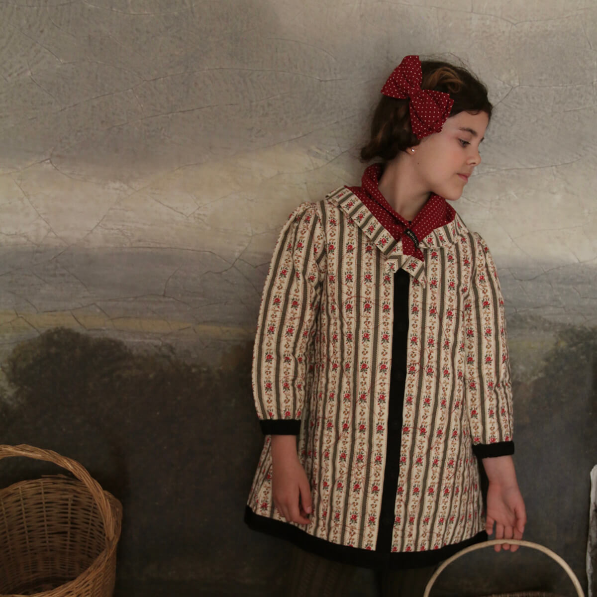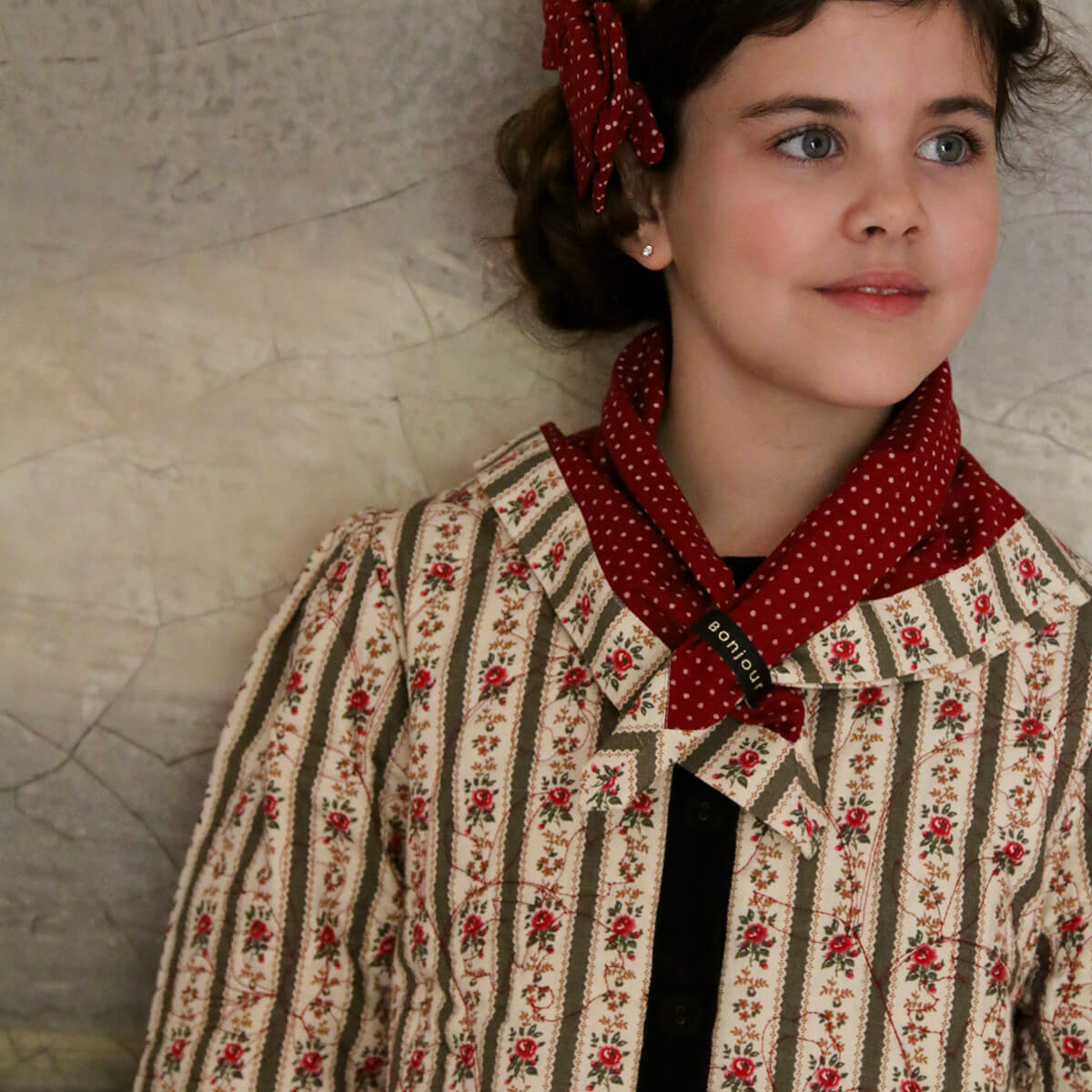 Dress Coat & Scarf in Khaki Tapestry Stripe by Bonjour
