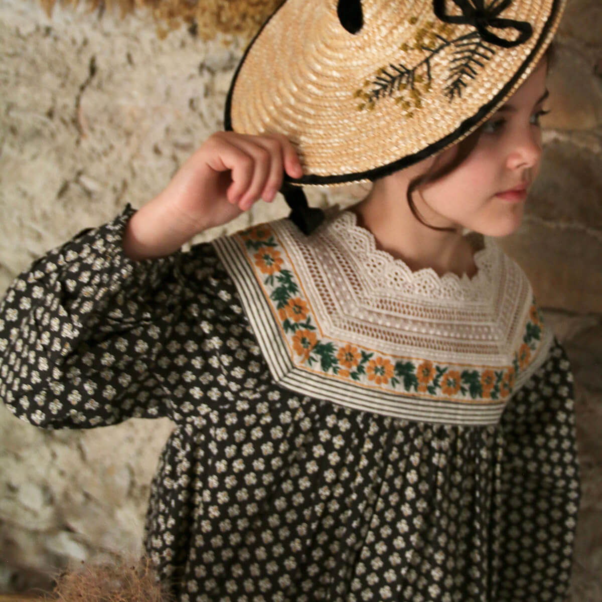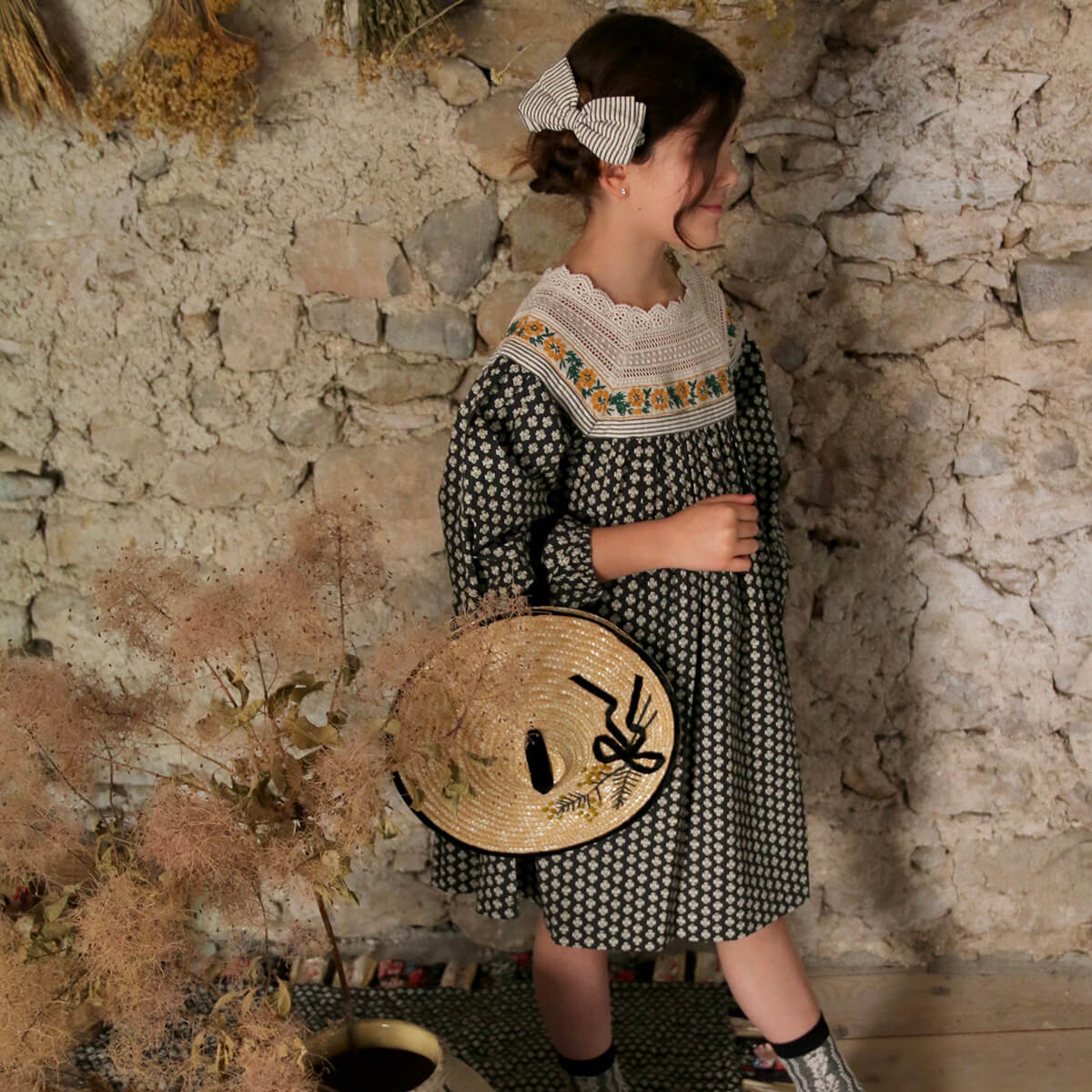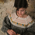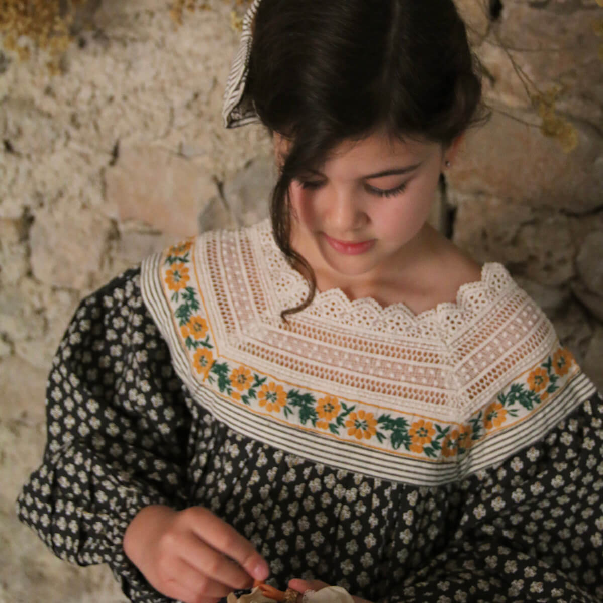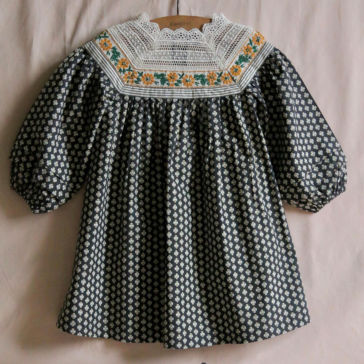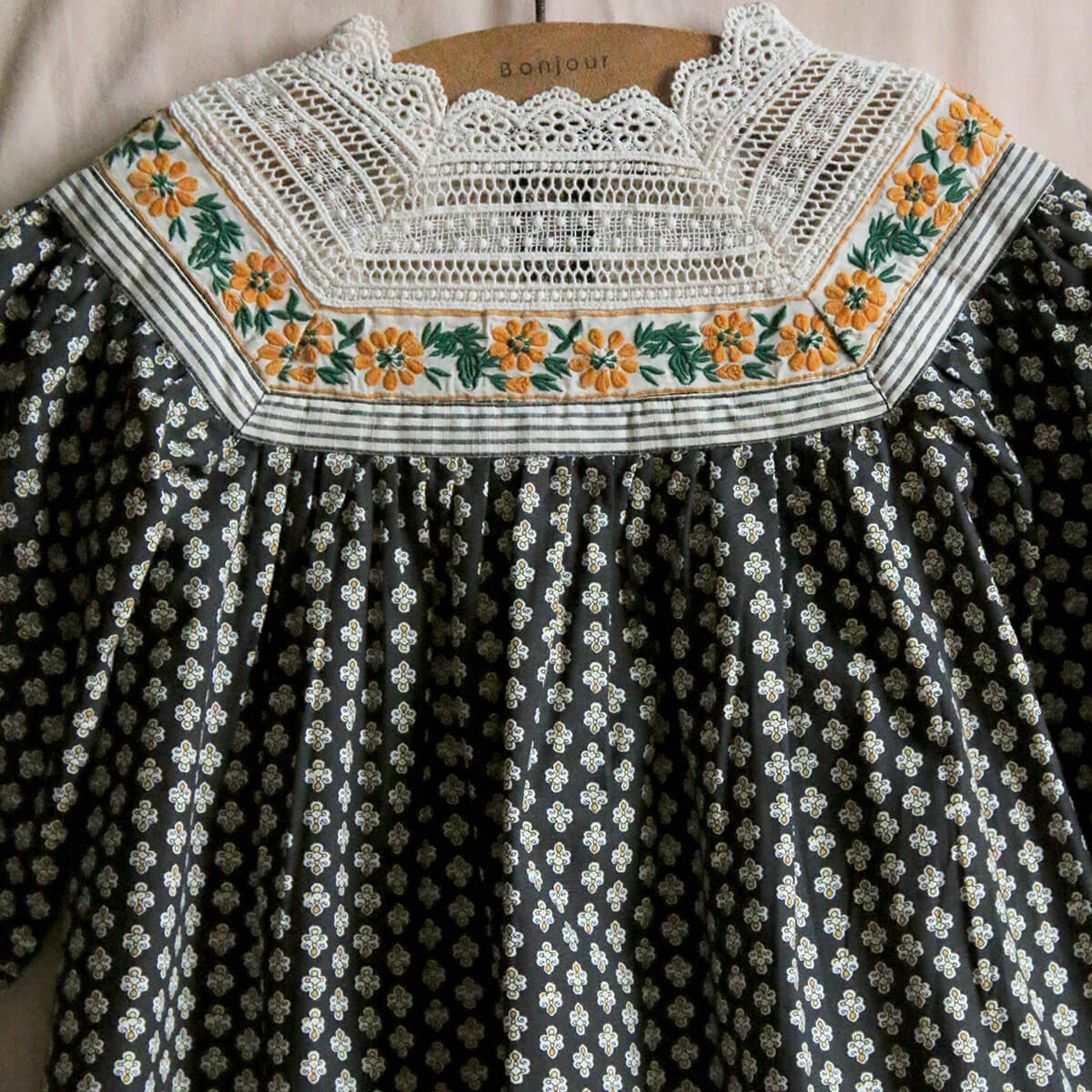 Dress by Bonjour. Pretty long sleeved dress with embroidered lace stripe at yoke.