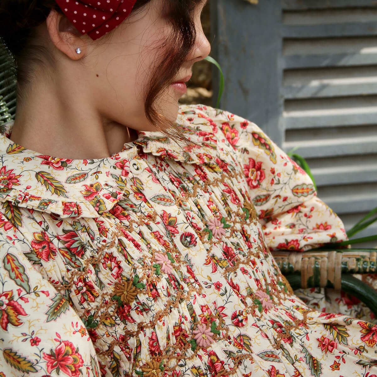 Romantic Tunique by Bonjour. Pretty winter floral top with a collar that can be worn long as a dress.