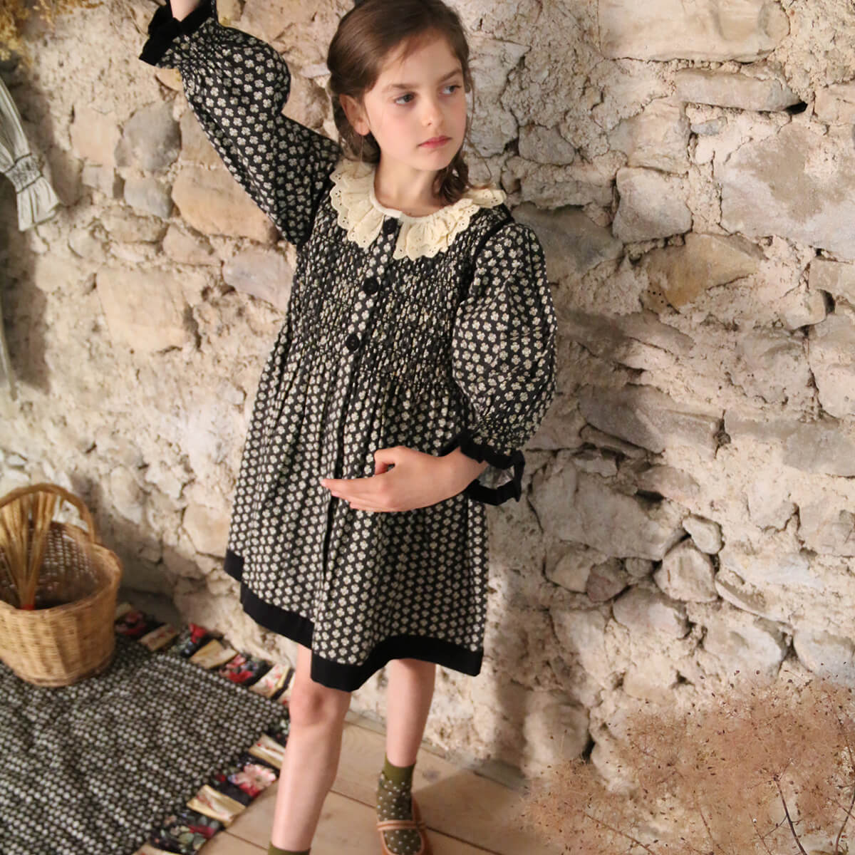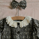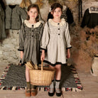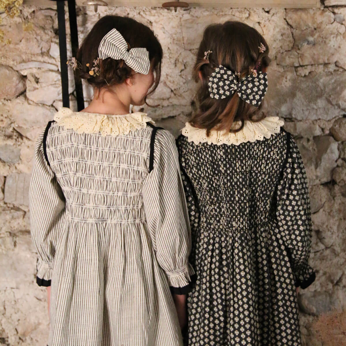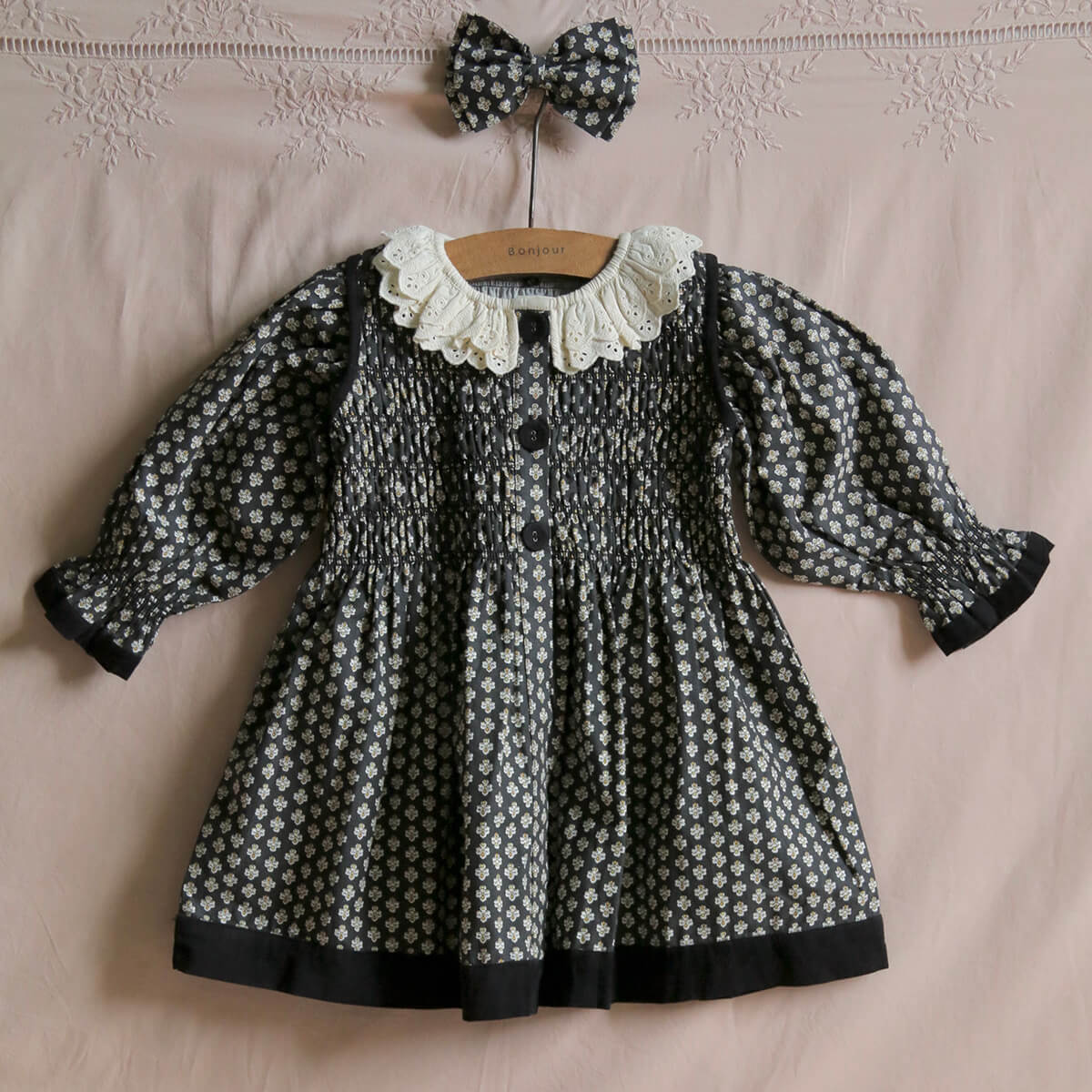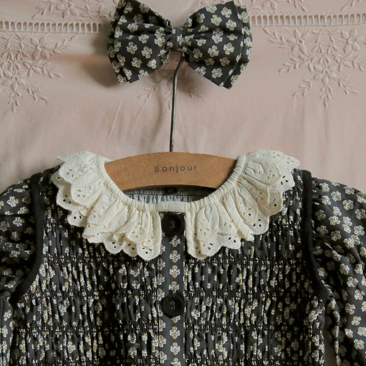 Tunique with hair clip by Bonjour. Pretty collared top that can be worn long as a dress with matching hair clip. Featuring black baby cord piping.