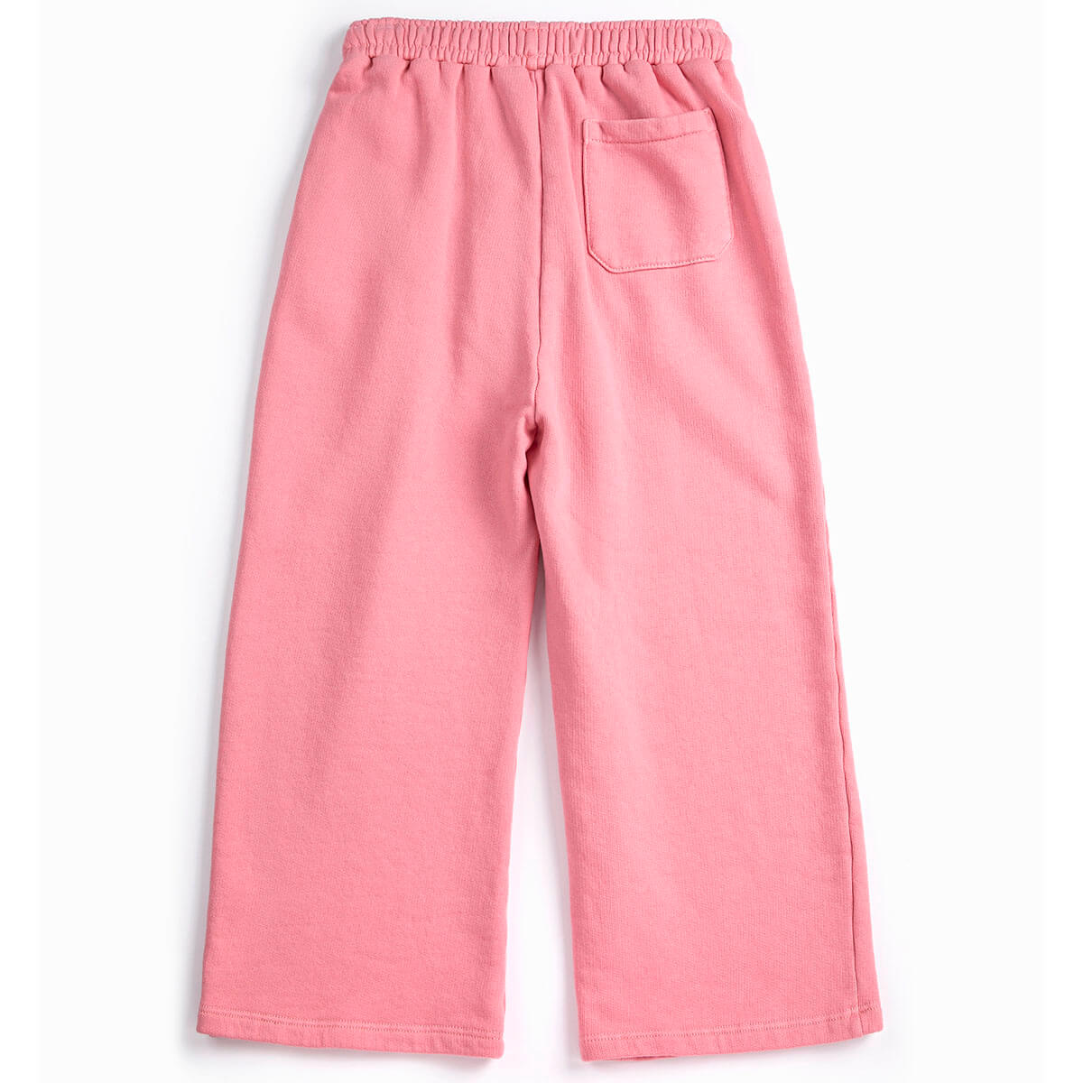 Bobo Choses Straight Jogging Pants. Pink sweatpants designed with an elasticated waistband, double pleat, wide leg fit, a patch pocket and seam pockets.