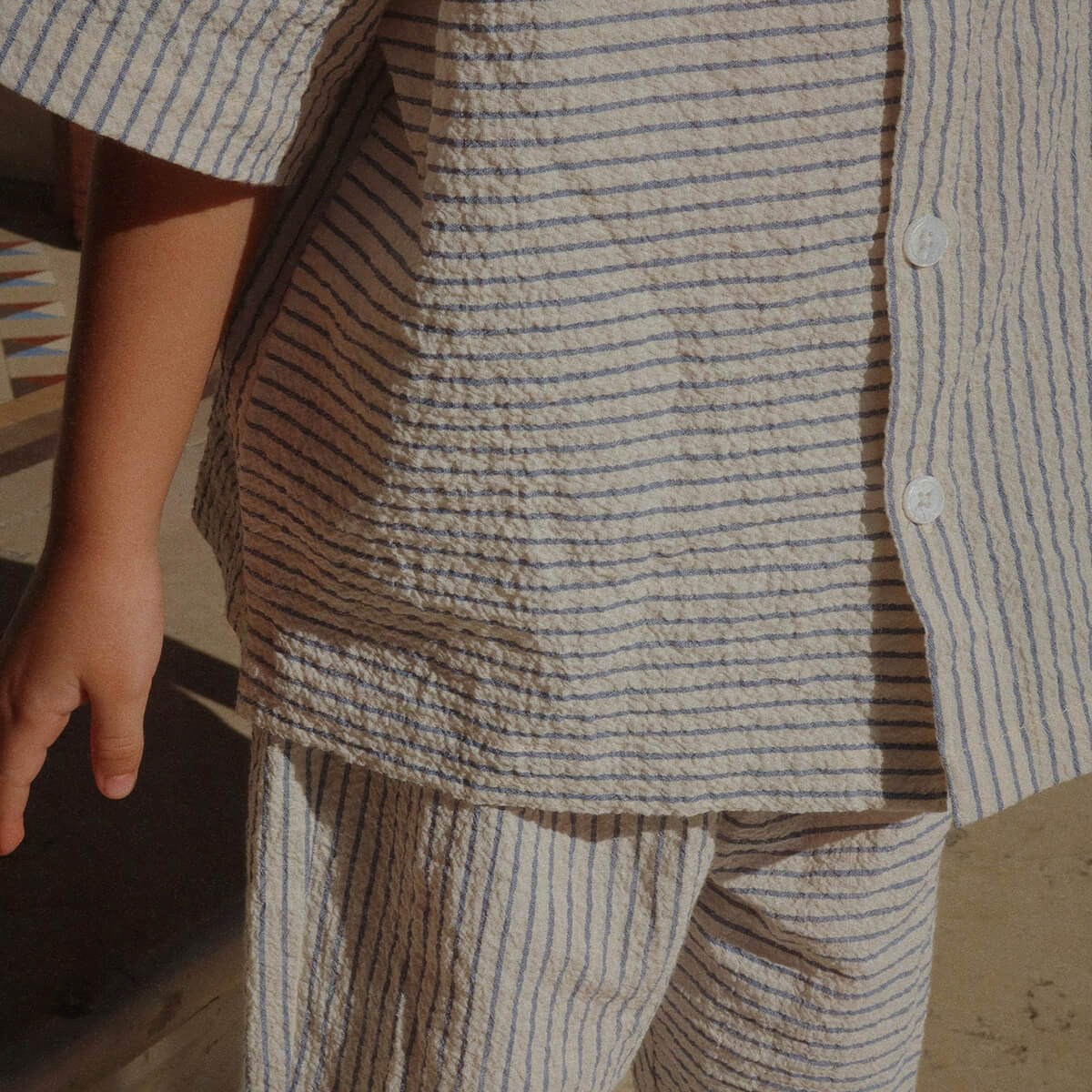 Duo Pants by Rosie Huntington-Whiteley x Konges Sløjd. Soft trousers made in a light and breathable cotton seersucker that looks and feels perfectly crinkled.
